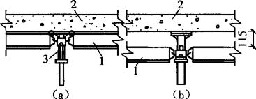 释义 | 早拆模板体系 早拆模板的原理是基于短跨支撑早期拆模思想。利用柱头、立柱和可调支座组成竖向支撑,支撑于上下层楼板之间,使原设计的楼板跨度处于短跨(立柱的间距小于2m)受力状态,在常温施工时间到3~4d情况下,待混凝土楼板的强度达到规定标准强度的50%时,即可拆除梁、板的模板及部分支撑,柱头、立柱及可调支座仍保持支撑状态。当混凝土强度增大到足以在全跨条件下承受自重和施工荷载时,再拆去全部竖向支撑。 (一)早拆模板体系构造 早拆模板体系的柱头为精密铸钢件,柱头的顶板(尺寸为50mm×150mm)可直接与混凝土接触,两侧的梁托可挂住梁头,梁托附着在方形管上,方形管可以上下移动115mm,方形管在上方时,可通过支承板锁住,用锤敲击支承板则能使梁托随方形管下落,如图5-18所示。 图5-18 早拆柱头 1-支承板;2-方形管;3-梁托 模板主梁是薄壁空腹结构,上端带有70mm的凸起,与混凝土直接接触(图5-19)。当梁的两端梁头挂在柱头的梁托上时,可以将梁支起,即可自锁而不脱落。模板梁悬臂部分(图5-20)挂在柱头的梁托上支起后,能自锁而不脱落。 图5-19 模板主梁 图5-20 模板悬臂梁 可调支座插入立柱的下端,与地面(楼面)接触,用于调节立柱的高度,其可调节范围为0~50mm(图5-21)。 图5-21 可调支座 支撑可采用碗扣式或扣件式钢管支撑。模板可用钢框胶合板模板或其他模板,模板边框的高度为70mm。 (二)早拆模板体系的安装与拆除 1.早拆模板体系的安装 先立两根立柱,套上早拆柱头和可调支座,加上一根主梁则架起一门架,然后用同样方法再架起另一门架,用横撑将它们临时固定,依次把周围的梁和立柱架起来,再调整立柱的高度和垂直度,并锁紧碗扣接头,最后在模板主梁之间铺放模板即可。图5-22为安装好的早拆模板体系示意图。 图5-22 早拆模板体系示意图 2.早拆模板体系的拆除 在模板拆除时,这种模板体系非常简单,只需用锤子敲击早拆柱头上的支承板,则模板和模板梁将随同方形管下落115mm,模板和模板梁便可以卸下来,保留立柱支撑梁板结构(图5-23)。当混凝土强度达到要求后,调低可调支座,解开碗扣接头,即可拆除立柱和柱头。 图5-23 早期拆模的方法 (a)支模状态;(b)拆模状态 1-模板主梁;2-现浇楼板;3-早拆柱头 采用早拆模板体系可加快模板与支撑的周转,可以节省模板和支撑,具有良好的技术经济效益。 |