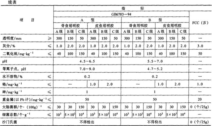 释义 | 明胶 别名 食用明胶 编码 GB 20.002 化学结构 动物胶原蛋白经部分水解的衍生物,为非均匀的多肽物质。相对分子质量约为1万至10万。 性状 白色或浅黄褐色、半透明、微带光泽的脆片或粉末状,几乎无臭、无味。不溶于冷水,但能吸收5倍量的冷水而膨胀软化。溶于热水,冷却后形成凝胶。可溶于乙酸、甘油、丙二醇等多元醇的水溶液。不溶于乙醇、乙醚、氯仿及其它多数非极性有机溶剂。 明胶是两性胶体和两性电介质,其溶液粘度主要依其相对分子质量而不同。粘度与凝胶强度还受pH、温度、电解质等诸因素影响。 制法 以动物的皮、骨、软骨、韧带和鱼鳞为原料,用碱法或酶法制成。 1.碱法 将动物的骨和皮等用石灰乳液浸渍后中和,水洗,于60~70℃浓缩,再经防腐、漂白、凝冻、刨片而成。 2.酶法 用蛋白酶将原料酶解,用石灰处理,经中和、熬胶、凝胶、烘干而成。 质量标准 鉴别方法 1.取本品0.5g,加水50mL,加热溶解制得试样溶液。取5mL溶液,加入由7.5%重铬酸钾溶液4份与10mg/100mL盐酸1份配成的混合液数滴,即发生橘黄色絮状沉淀。 2.取上述溶液1mL,加水100mL,摇匀后,加入现配制的单宁液(单宁1g溶于1mL乙醇,加水至10mL)数滴,即发生混浊。 毒理学依据 ADI 无需规定(FAO/WHO,1994)。 使用 乳化剂、稳定剂、增稠剂、胶凝剂、澄清剂和发泡剂。 1.使用注意事项 (1)明胶本身具有起泡性,也有稳定泡沫的作用,尤其接近凝固温度时,起泡性更强。 (2)使用时先在冷水中浸泡,再加热溶解,或直接加入热水中高速搅拌。 2.使用范围及使用量 (1)我国《食品添加剂使用卫生标准》(GB 2760-1996)规定:可按生产需要适量用于各类食品。 (2)FAO/WHO(1984)规定:用途及限量,加工干酪制品,8g/kg;乳脂干酪,5g/kg(单用或与其它增稠剂合用);火腿、猪脊肉,按GMP;酪农干酪,5g/kg(按稀奶油计):稀奶油(单用或与其它增稠剂和改性剂合用,仅用于巴氏杀菌掼打奶油或用于掼打用的超高温杀菌稀奶油和消毒稀奶油),5g/kg。 (3)实际使用参考: ①制造冰淇淋,用明胶保护胶体以防止冰晶增大,使产品口感细腻,添加量为0.5%左右;酸奶、干酪等乳制品中加入量约0.25%,可防止水分析出,使质地细腻。 ②用于制造明胶甜食如软糖、奶糖、蛋白糖、巧克力等,加入量1%~3.5%,最高达12%。 ③制造午餐肉、咸牛肉等罐头食品广泛使用明胶,可与肉汁中的水结合,以保持产品外形、湿度和香味,用量为肉量的1%~5%。 ④此外尚可用作酱油的增稠和果酒澄清。 |