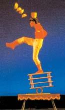 释义 | 晃板(huàng—) 杂技节目。 演员足踏滚木上的木板,左右晃动作各种高难度的表演。或更有另一演员在前者头上或肩上表演单手顶、对头顶等各种动作。也有多人表演的。 此外还有以金属圆球代替滚木的,叫做“晃球”,难度更高。 晃板 |