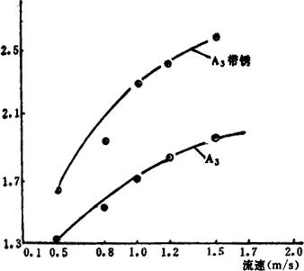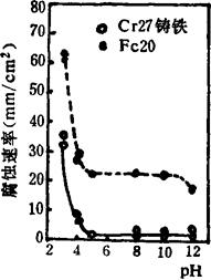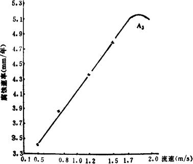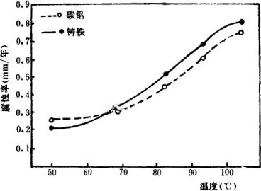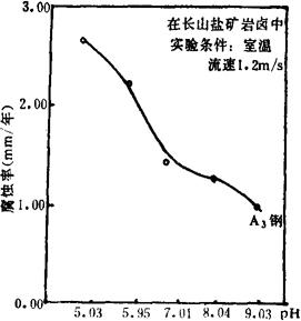 释义 | 普通碳钢 普通碳钢使用较广,常用的为A3钢、#20、#45锅炉钢等。 优点:导热性好,硬度较大,易焊接加工,价格便宜,来源较广、容易。 缺点:耐磨性能差,在盐卤腐蚀介质中易出现孔蚀及均匀腐蚀,均匀腐蚀速率一般为0.47mm/年左右,孔蚀速率高达10~15mm/年。 1.普通碳钢的耐蚀性 在盐卤、冷凝水环境中,碳钢点蚀、均匀腐蚀严重。引起腐蚀的主要因素是介质中溶O2、CO2、H2S、NH3及温度、pH值、流速等。 (1)温度对碳钢腐蚀的影响 实验测得A3钢在自贡长山盐矿岩卤中腐蚀速率与温度的关系如表3-6-25、图3-6-23。 表3-6-25A3钢在自贡长山岩卤中腐蚀速率与温度的关系 图3-6-23 A3钢在自贡长山岩卤中耐蚀实测图 碳钢和铸铁在脱气的温海水中的耐蚀性试验数据如图3-6-24。 图3-6-24 碳钢和铸铁在脱气的温卤水中的耐蚀率(试验156天) (2)pH值对碳钢腐蚀的影响 实验测得,长山岩卤中pH值与A3钢的腐蚀关系如表3-6-26。 表3-6-26 A3钢腐蚀速率与卤水pH值的关系 由表3-6-26可知: ①料液pH值升高,A3钢的腐蚀速率增大。当pH≤5时,A3的腐蚀速率变化很大,增加速率很快。 ②对脱气卤水,pH值由5升高到8(10)碳钢的腐蚀速率几乎不变,恒定在某个数值左右,如图3-6-25、3-6-26。因此,在实际生产中,只要在工艺上考虑除氧、脱气,调节卤水的pH值6~8,碳钢的腐蚀可大大降低。 图3-6-25 在各种pH值的3%的NaCl溶液中的腐蚀(试验30天) 图3-6-26 pH值与腐蚀率Ke的关系曲线 (3)流速对碳钢腐蚀的影响 流速对A3钢腐蚀的影响,见表3-6-27、3-6-28、 3-6-29,图3-6-27,3-6-28 表3-6-27 室温下料液流速对A3钢(无锈层)腐蚀速率 注:在自贡长山岩卤中测试的结果。 表3-6-28 室温下料液流速对A3钢(有锈层)的腐蚀速率 表3-6-29 60°时料液流速对A3钢腐蚀影响 图3-6-27 室温时料液流速对A3钢的腐蚀速率 图3-6-28 60℃时料液流速对A2钢的腐蚀速率 由图表可看出: ①碳钢A3的腐蚀速率随料液流速提高而增大。锈层对碳钢的基体无保护作用。因此,在实际生产中,料液流速不宜太高。 ②料液温度为60℃、流速为1.7m/s时,腐蚀速率最大;流速大于或小于1.7m/s,腐蚀速率都会减小。流速过高,传热系数增大,但高速流动的含盐晶盐浆对加热管的强烈冲刷,将导致磨损和均匀腐蚀加重;流速太低,腐蚀可减轻,但不利于传热。因此,在生产和设计中流速一般以1.5~2.0m/s为宜。 综上所述:碳钢作为加热管材,只要注意调节原料卤水的pH值(6~8),流速控制在1.5~2.0m/s,工艺路线上考虑卤水脱气,二次蒸汽除沫,洗涤Cl-,加石膏晶种防垢,避免频繁的停、开车,可使腐蚀速率大大减低。 |