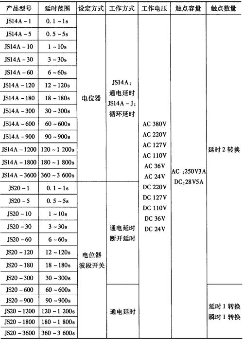 3.常用数字式时间继电器的产品型号及主要技术参数