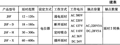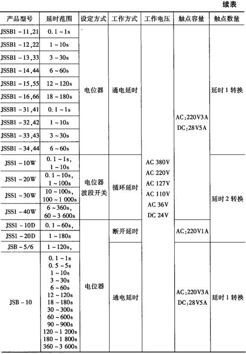 表1-90 常用晶体管时间继电器的产品型号及主要技术参数