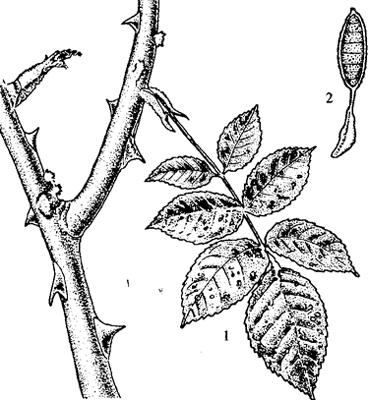 【病原】 为多孢锈菌属真菌Phragmidium mucronatum(Pers.)。冬孢子多细胞,有胶质长柄。