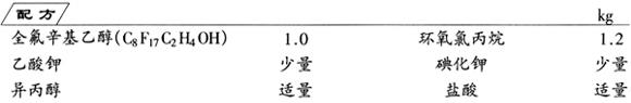 分酯化反应和皂化反应。先使全氟辛基乙醇、环氧氯丙烷、乙酸钾和碘化钾在异丙醇中于151℃下反应,得到酯类,再用盐酸进行皂化,即得产品。