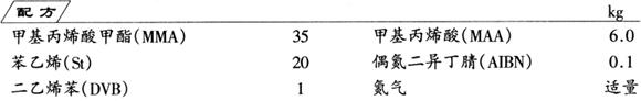 在四颈烧瓶中按配比加入MMA、St和AIBN,通入N2气,搅拌10min后,开始加热,90℃时加入MAA,冷至60℃加入DVB,搅拌均匀将预聚物灌模,真空脱气,封好后在50℃烘箱中恒温10h。接着逐步升温至60℃、80℃、100℃和120℃,各保温1h,冷到室温脱膜,即得成品。