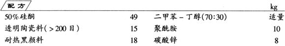 先将硅酮、聚酰胺、陶瓷料、黑颜料、碳酸锌一起球磨48h,然后用二甲苯-丁醇稀释到黏度合格,即得耐热涂料。