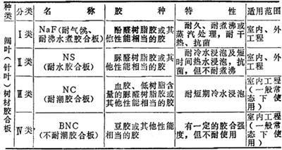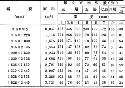 注:按材质和加工工艺质量,胶合板分为“一、二、三”三个等级,各等级的质量标准,分别见GB733-75(阔叶)及GB-1439(针叶)中有关规定。