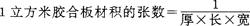 释义 | 木材材积折算方法 ①锯材 在物资计划统计上,锯材一般按平均出材率70%折算。1m3锯材折成1.428m3原木 ②成材(规格方材) 中级门窗:松木1m3成材折成2.51m3原木 硬木1m3成材折成3.51m3原木 高级门窗:松木1m3成材折成5.0m3原木 硬木1m3成材折成7.0m3原木 ③枕木 枕木折合材积的计算公式为: 枕木材积=厚×宽×长 标准枕木=160×220×2500mm=0.088m3/根 每立方米材积折合11.3636根 标准枕木=135×190×2500mm=0.088m3/根 每立方米材积折合15.5945根 ④胶合板 胶合板折合材积的计算公式为: 〔计算例〕 3×3×6(英尺)即3×915×1830mm的胶合板 每张材积=0.003×0.915×1.830=0.00502m3 1立方米折合199.2张即(1÷0.00502=199.2张),林业部规定以200张为1立方米胶合板。 |