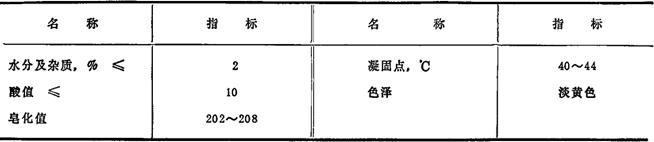 释义 | 木油 分子式 脂肪酸三甘油酯,其脂肪酸组分(%):棕榈酸34,硬脂酸4,油酸23,亚油酸12,亚麻酸21。 性能 淡黄色蜡状固体或半固体,是整粒乌桕籽(果肉与核仁)一起压榨而得的油脂。不溶于水,溶于氯仿、二硫化碳。 理化常数:相对密度(15°/15℃)0.920~0.935,脂肪酸凝固点40~44℃,皂化值200~210,碘值80~100。 质量规格(企业标准) 制皂用木油质量标准(企业标准) 用途 用于制造肥皂、脂肪酸、硬化油、甘油或蜡烛等,也用作制取脂肪醇、脂肪酸、脂肪胺及表面活性剂。 国内主要产地 浙江、江西、广西、湖南、湖北等省各地。 |