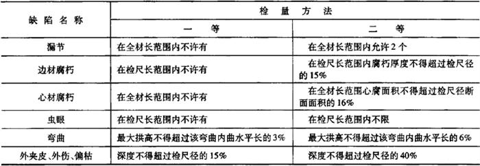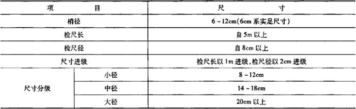 表4-16 杉原条的尺寸及尺寸进级与分级