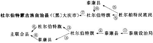 ①1933年改泰康设治局为泰康县。②1940年撤泰康县并入杜尔伯特旗。③1946年3月杜尔伯特旗和泰康县又分治。④1946年8月再次合并成立杜尔伯特民族民主联合(县)政府。⑤不久又分为杜尔伯特旗和泰康县。⑥1949年撤销泰康县,并入杜尔伯特旗。⑦1956年12月撤销杜尔伯特旗,成立杜尔伯特蒙古族自治县。