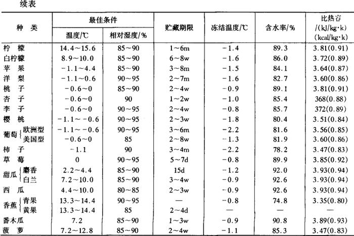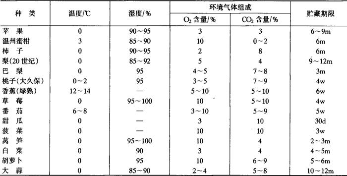 释义 | 果蔬原料的贮放 (一)果蔬原料的贮藏方法 收购进厂的果蔬原料应尽快加工,但由于原料生长季节和工厂生产能力的矛盾,果蔬原料采收后一时难以加工完毕。对于果蔬加工厂来说,应根据本厂条件选择合适的贮藏方法,并按原料入厂先后次序,按照先来先用的原则,不要因为运进新的果蔬原料而延迟对先来原料的处理。 新鲜水果和蔬菜收获后,商品寿命是有限的。除番茄和香蕉等转跃(Climacteric)型水果,在收获后其色调、风味、组织等质量随着成熟过程有所提高外,一般果蔬原料在收获后质量是趋向劣化的。为了维持果蔬的新鲜度可以采取以下措施: ①降低果蔬原料的品温,以降低果蔬的呼吸和老化的速度。 ②将果蔬放于合适的相对湿度环境下,防止水分损失,延缓果蔬的变质和质量降低。 ③采用适当的气调贮藏(CA贮藏),抑制果蔬的呼吸和老化。对于苹果、香蕉、番茄有转跃期的果蔬,在成熟时会产生植物激素乙烯,因此这类果蔬原料在成熟初期收获后放于乙烯气环境下就可人工熟成。但乙烯对胡萝卜,莴笋等敏感性果蔬会产生损害。 ④使用化学物质防止生理和微生物引起的劣化和损失。 果蔬原料的贮藏方法很多,比较常用的方法有以下几种: 1.堆藏 堆藏实际就是露地贮藏。水果采收装箱后选用避阴高燥地势,将果蔬箱码垛,上面覆盖高粱秸或帆布,天冷时注意防寒或及时入库贮藏。 蔬菜采收后可摊平降温,并除去有病虫害和机械伤的菜。 堆藏适于原料产地或工厂对苹果、梨、胡萝卜等入库前的预冷,仅作临时贮藏。 2.通风库贮藏 通风库贮藏是在有隔热层的库内利用昼夜温度差,通过换气来保持一个比较适宜的贮藏条件的贮果方法,其基本特点与窑窖相似,但通风库有较为完善的隔热措施和通风设备,但通风库仍靠自然温度调节库温,在温度过高或过低的地区或季节,若不加其他辅助设施,仍难维持理想的温湿条件。 通风库适合冬季大量贮藏苹果、梨、山楂等,我国北方使用比较普遍。水果采收后先在库外放置一段时间,待彻底冷却后再入库,入库前后10d左右,注意调节通风,尽快将库温降低至0℃。水果一般采取箱装为主,在库内的堆放方式直接影响贮藏效果。箱的排列方式以正斜交错(花垛)的方式较好,箱与箱之间相隔5~10cm的缝隙,垛高与顶部保持一定距离。箱下需用枕木或石条垫起,最下层距地面20~30cm,最上层距顶部1m。箱垛周围靠墙边留出50~60cm通道,库中央也应留出1.0~1.2m通道,以利通风,使库内各处温度均匀,同时也便于检查和出库。 水果入库贮藏时要注意库内温度的调节,刚入库时温度较高,应将门窗和通风口全部打开,使其大量通风换气。上冻时需注意防寒,根据外温与库温情况开闭通风口或门窗。立春后,外部温度逐渐升高,果实最容易在这个时期受热,更应勤检查温度变化情况,适时进行通风换气,防止积热。 通风库内的湿度一般以相对湿度80%~90%为宜,可通过通风换气或喷洒水的方法进行调节。 另外水果入库时应事先计划好出库的先后次序。贮藏多品种水果时应分库位堆垛,防止相互影响。 3.机械冷藏(冷库) 机械冷藏也叫冷风库贮藏,是在有良好隔热保温层的库房中装有制冷降温设备的一种贮藏方法,是目前果蔬常年贮藏的较好方法,生产规模较大的果蔬加工厂应同时配建冷库。冷库一般由冷冻机房、贮藏库、缓冲间组成。制冷机械包括制冷压缩冷凝机组和换热器(冷风机)两部分。大型冷库还应配套冷凝器、贮液器和氨液分离器等。与低温冷库相比,果品冷库一般库温较高,故又称高温冷库。高温冷库可采用由鼓风机抽吸库内的空气,经过蒸发管变成冷空气,再循环送入冷库内,从而使果蔬间接降温。简易冷库(亦称土冷库)是经改造的半地下通风库,即将通风库的土墙加厚到1.2~1.5m,内衬稻糠绝缘,并改造库顶及库门,按上述间接方式进行机械降温。 果蔬先经挑选装箱,入库前再经预冷,预冷方式根据不同地区、季节情况和果蔬种类而定,普遍采用自然冷却方法。在贮藏过程中要严格控制库内温度和湿度,昼夜升降温度幅度不得超过0.5℃,在出库过程中,温度升高不应超过4℃,果蔬冷藏时应防止发生低温冷害现象。低温冷害包括不进行后熟(番茄和香蕉等)发生的凹陷性病斑,生成异味和异臭,引起低温冷害的缺陷见表2-1-14。多数场合下低温冷害难以从外面发现,一般在从冷库取出后放于常温下才发现。防止低温冷害的最重要方法是对容易产生低温损害的果蔬不进行冷藏,例如番茄和香蕉应在12.5℃以上温度贮藏。但较高的温度也会引起一般的质量恶化,为此,对这类果蔬可以从贮藏中的极限低温升温,再逐渐降至极限温度以下,这样可保持这类果蔬的新鲜度。 表2-1-14 果蔬冷害发生的温度与特征 4.气调贮藏 (1)气调贮藏原理与效果气调(调节气体)贮藏又称CA贮藏,人为改变贮藏环境中的气体成分,其要点是降低空气中的氧气并适当提高二氧化碳的浓度。气调贮藏与机械冷藏相结合就是气调冷藏,同时控制温度、湿度和气体成分等各种环境因素,是当代最先进的果蔬贮藏技术。此外还有一种限气(变气)贮藏方法,也称MA贮藏,通常将果蔬密闭在塑料袋(帐)内,通过果蔬自身呼吸(自发式)或人为办法改变袋(帐)内的气体成分,又称“简易气调”。MA贮藏时O2、CO2变化大,没有一定指标,多用于短期贮运。 果蔬在空气中进行正常的呼吸作用,普通空气的组成为N278%、O221%、C