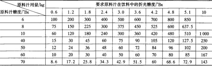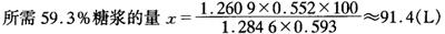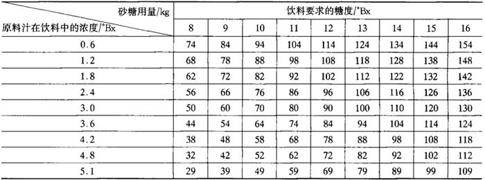 释义 | 果蔬汁饮料生产的基本工序 (一)调配 1.原料的调配与调配顺序 通过调配,主要调整饮料的糖酸比,突出果蔬汁饮料的新鲜感和清凉感,并充分体现果蔬汁的原有特色。 果蔬汁饮料的原料主要有水、果蔬原料(包括原汁或浓缩汁、果蔬浆)和食品添加剂等。水必须符合饮料用水标准。果汁型饮料的原料用果蔬汁或浓缩汁。果肉型果蔬汁所用原料是经过破碎、打浆、磨细等微粒化处理,浆料颗粒细度在50μm以下,内含一定量不溶性固形物的黏稠性果蔬浆料。果蔬汁饮料使用的食品添加剂有甜味剂、酸味剂、增稠剂以及着色剂和香料等。 为了适应消费者的嗜好,果蔬汁饮料需要保持一定的糖酸比。一般果蔬汁饮料的可溶性固形物为12%~15%,总酸0.3%~0.6%。果汁型饮料糖酸比一般20~25,果肉型饮料和果汁清凉饮料糖酸比30左右。因此,需要根据原料汁或浆的糖度和酸度、汁浆的用量,用砂糖和食用酸(主要是柠檬酸)对所配饮料的糖酸含量,即糖酸比进行调整。当然对于低糖或低热的饮料,糖酸比应作别论。原料汁稀释后色泽太浅时还需用食用着色剂来调色。果肉型饮料还要添加增稠剂和稳定剂,防止肉汁分层现象的发生。 在配料前先制备好糖浆,将砂糖溶化并过滤,制成一定浓度的糖浆。 配料一般分批进行,根据灌装机生产能力,一次配料500~2000kg。根据每批配料量,按照配方规定的不同品种原料的配比,计算果蔬汁(或浆)的用量。 其次是调整糖酸比,将所用的各种果蔬汁或浆料放入调配罐搅拌混合,根据测定的混合汁浆的可溶性固形物含量、汁浆用量、产品饮料的可溶性固形物含量以及配料量,计算砂糖用量,并按制备的糖浆浓度,算出糖浆用量。计量后将所用糖浆放入调配罐中,加水至每批配料的规定量,进一步搅拌混合。测定调配罐内饮料的酸度,计算需要补充的柠檬酸用量,将酸配制成酸溶液加入调配罐中。 最后加入增稠剂、稳定剂,并根据需要加入微量着色剂、香精等,充分搅拌后均质。有时在均质前还需过滤。调配罐内调配好的饮料温度在进行均质前一般为60~70℃。 为了使各批次饮料产品的色泽等感官指标和主要理化指标一致化,必须严格配方制度,提高配方的科学性,注意产品风味,严格生产管理和卫生管理,以提高产品质量,保持产品的一致性,进而形成优质产品,创出名牌。 2.糖浆制备 在配料以前先要配制糖浆。制备糖浆的目的是为了获得一种调和均匀、加工完美的糖浆,以能生产出品质一致的果蔬汁饮料。 糖浆制备包括溶糖和过滤两个过程。溶糖的方法有冷溶法和热溶法。 冷溶法溶糖可使用内装搅拌器的不锈钢桶。制备过程很简单,仅需将糖量和水量配准,在室温下进行搅拌,待完全溶化后去除杂质,就可得到有一定浓度的糖浆液。糖浆浓度一般为40%~60%。由于冷溶法溶糖没有加热杀菌过程,因此对卫生管理要求特别严格,从糖浆到灌装的整个过程,必须保持清洁卫生,而且冷溶糖浆必须当天用完。如果生产中断存放时间长时,可以预先配成60%~65%的高浓糖浆,也可在糖浆中加酸,降低pH,以提高其贮存性。冷溶法无需加热设备,可以节省蒸汽消耗。 热溶法需要化糖锅,可以用不锈钢夹层锅,大量生产时用专用化糖锅。还可用板式换热器与糖浆贮罐。水和糖计量后在贮罐内混合,贮罐本身没有加热结构,由换热器加热。化糖时根据制备的糖浆浓度和砂糖量算出化糖水的量,考虑化糖时的加热蒸发,水量可适当多加一些。化糖时可先将水放入化糖锅内,加热至60~80℃时,再加入糖,继续加热至沸,同时不断搅拌。在化糖过程中,表面会有凝固杂物浮出,在人工化糖时可以用漏勺撇去。为了获得澄清的糖浆,还可在化糖时加入食用蛋白粉,用量为100kg糖加4g,在糖完全溶化后加入,并随糖浆煮沸,这时蛋白凝固,并与糖浆内的混合物一起浮到糖浆表面,成为泡沫状,可用漏勺或网筛去除,糖浆澄清后再行过滤。 用加热法溶糖时,应不断进行搅拌,防止糖浆过热产生焦糖。糖浆浓度一般以50%~60%为宜。 生产果汁饮料,由于调配好的果汁经高温瞬间杀菌后直接灌装,故糖浆制备时不必煮沸,达80℃就可保证安全。如果化糖时在80℃以上保持十几分钟进行杀菌,更为安全。 热溶法制备糖浆的优点有:①能杀灭糖所带的细菌;②可分离、凝固糖中的杂质;③化糖速度快。 配制的糖浆,需要测定浓度,以便在配料时能准确计算糖浆用量。测定糖度可用比重计、波美表、糖度表,最简便和最常用的是手持糖度计(折光计)。 糖含量用白利糖度(°Bx)表示,亦即质量分数。例如50°Bx(50%)的糖浆表示100g糖浆中含糖50g。50°Bx糖浆20℃时的相对密度为1.232,因此100mL50°Bx糖浆的质量为123.2g,就是说100mL50°Bx的糖浆中糖的质量为61.6g。 蔗糖结晶的比体积(20℃)为0.63L/kg,每kg蔗糖所具有的真实体积为0.63L,而且在相同温度下,在糖浆中也有同样的体积。例如2kg50°Bx的糖浆,含有1kg糖和1kg水,其体积为V=1+0.63=1.63(L),因此,50%的糖浆相对密度为2/1.63=1.23。 为了明确糖浆体积和糖量与水量之间的关系,同时也为了方便生产时的计算,在此举例说明如下: 例1 制备糖浆时的水量计算 制备55.6°Bx的糖浆,60kg糖需用多少水? 设x为所需要的水量。 糖与水的质量比为55.6∶44.4=60∶x 即需47.91kg或47.91L的水。 例2 制备糖浆需要的糖与水的量 制备105L的55°Bx糖浆,糖与水的用量各多少? 1kg55°Bx糖浆含糖0.55kg,糖体积为0.55×0.63=0.3465L 1kg55°Bx的糖浆中水的体