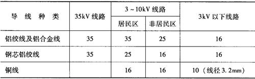 释义 | 架空线路导线允许的最小截面 架空线路导线截面的最小允许值见表12-60。 表12-60 架空线路导线最小允许截面/mm2 注:①居民区指厂矿地区、港口、码头、火车站、城镇及乡村等人口密集地区。 ②非居民区指居民区以外的地区。此外,虽有车辆、行人或农业机械到达但未建房屋或房屋稀少地区,亦属非居民区。 |