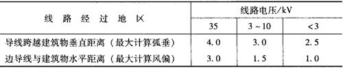 释义 | 架空配电线路的安全距离 架空配电线路与建筑物之间的允许最小距离见表12-62。 表12-62 导线与建筑物间的最小距离/m 注:架空线路不应跨越屋顶为易燃材料的建筑物,对其他建筑物也应尽量不跨越。 架空配电线路与地面的最小距离见表12-63。 表12-63 导线与地面的最小距离/m 架空配电线路与街道行道树间的最小距离见表12-64。 表12-64 导线与街道行道树间的最小距离/m |