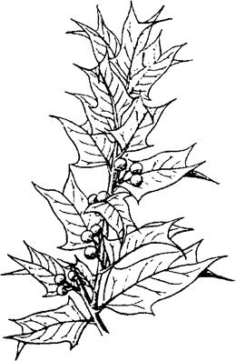 枸骨又名鸟不宿。原产我国长江中下游,现各地多有栽培。宜植园林配作观叶观果花木,盆栽观赏很有价值,叶形奇特,别具风格,红果夺目,富有情趣(图2-151)。
