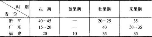 释义 | 柑橘施肥技术 柑橘施肥的目的就是调节营养平衡,使营养生长和开花结果相协调,既要培育健壮的树势,又要达到优质高产的目的。 (一)柑橘施肥的原则 柑橘是热带亚热带多年生常绿果树,在条件适宜时全年均可能生长,没有明显的深休眠期,因此比一般落叶果树需肥量大;而且柑橘种类、品种繁多,砧木不同,立地条件不同,对施肥的要求也不尽一致。因此,应根据不同情况合理施用肥料。此外,由于湿度、雨量等气象因素不仅直接影响柑橘根系吸收养分的能力,而且对土壤有机质的分解矿化速率及养分形态也有影响,同时与土壤微生物的活动也有很大关系。所以施肥还必须结合气象因子的变化灵活掌握。为了以最低的施肥成本获得较高的经济效益,正确判断柑橘的营养状况是非常必要的。以叶片分析为主,配合土壤分析和田间实验,可以较准确地提供柑橘营养水平的基础数据,以此为基础确定柑橘施肥的种类及施肥量比较可靠。 因此,在柑橘施肥中应综合考虑树龄、品种、树势状况、产量要求及土壤条件、水分状况和病虫防治等,才能达到施肥合理,获得优质高产的目的。 (二)幼树施肥 未进入结果期的幼树,其栽培目的在于促进枝梢的速生快长,培养坚实的枝干和良好的骨架,迅速扩大树冠,为早结丰产打下基础。所以,幼树施肥应以氮肥为主,配合施磷钾肥。氮肥施用的重点,着重攻春、夏、秋3次枝梢,特别是攻夏梢。夏梢生长快而肥壮,对扩大树冠起很大作用。因此,幼树施肥的主要之点是: 1.增加氮肥施用量 因为幼树主要是营养生长,要迅速扩大树冠,需施用大量的氮素。根据各地实验,一般1~3年生幼树全年施肥量,平均每株可施纯氮0.18~0.5千克,约合尿素0.35~1.0千克,具体施用应从少到多,逐年提高。同时还应配合适量的磷、钾肥。随着树龄增大,树冠不断扩大,对养分的需求不断增加。因此,幼树施肥应坚持从少到多,逐年提高的原则(表6-5) 表6-5 1~3年生幼树施肥量(克/株·年) (中国农业科学院柑橘研究所,1989) 2.施肥期 着重在各次抽生新梢的时期,特别是5~6月促生夏梢,应作为重点施肥期。7~8月促进秋梢生长也是重要的时期。 3.施肥次数 幼树根系吸收力弱,分布范围小而浅,又无果实负担。因此,一次施肥量不能过多,应采用勤施薄施的办法,即施肥次数要多,每次施肥量要少。一般每年施肥4~6次,或更多次数。 4.间作绿肥,培肥土壤 幼年果园株行间空地较多,为了改良土壤,增加土壤有机质,提高土壤肥力,防止杂草,应在冬季和夏季种植各种豆科绿肥,深翻入土,这是一种有效的改土措施。 (三)结果树施肥 柑橘进入结果期后,其栽培目的主要是不断扩大树冠,同时获得果实的丰产和优质。这时施肥也就是调节营养生长和生殖生长的平衡,即有健壮的树势,又能丰产优质。为了达到此目的,必须按照柑橘的生育特点及吸肥规律,采用合理施肥技术,科学施肥。 1.施肥期 柑橘在年生长周期中,抽梢、开花、结果、果实成熟、花芽分化和根系生长等都有一定的规律,确定施肥期还应根据土壤、气候、品种、砧木、树势、产量和肥源等进行施肥,其主要施肥期为: (1)花期肥 花期是柑橘生长发育的重要时期,这时既要开花,又要抽春梢。花质好坏影响当年产量,春梢质量好坏既影响当年产量,又影响翌年产量。因此,施花前肥是柑橘施肥的一个重要时期。为了确保花质良好,春梢质量佳,必须以速效化肥为主,配合施有机肥。一般在2月下旬至3月上旬施肥,约占全年施肥量的30%左右。 (2)稳果肥 稳果期正是柑橘生理落果期和夏梢抽发期,这时施肥主要目的在于提高坐果率,控制夏梢突发。为了多坐果,控制夏梢突发,避免在5~6月大量施用氮肥,否则刺激夏梢突发,引起大量落果,影响当年产量,因此一般不采用土壤施肥。为了保果,多采用叶面喷施0.3%尿素+0.2%磷酸二氢钾+激素(激素浓度因种类而异),10~15天喷1次,喷2~3次能取得良好效果,约占全年施肥量5%左右。 (3)壮果肥 柑橘在这个时期的生长发育特点是果实不断膨大,形成当年产量;抽生秋梢,秋梢是良好的结果母枝,影响来年花量和产量;花芽分化,一般9月下旬开始,直到第二年开花,因各地气温不同,时间略有差异。花芽分化的质量直接影响第二年的花量和结果,因此,壮果期是柑橘施肥的又一重点时期。为了果大、秋梢质量佳、花芽分化良好,必须以速效化肥为主,配合施有机肥,时间一般为7月至8月上旬,约占全年施肥量的35%左右。 (4)采果肥 柑橘挂果期很长,一般为6~12个月,因此消耗水分养分很多,树势衰弱。为了恢复树势,继续促进花芽分化,充实结果母枝,提高抗寒力,为来年结果打下基础,因此,采果后必须施肥。此时(10~12月)因气温下降,根系活动差,吸收力弱,应以有机肥为主,大量施用有机肥,配合施适量的化肥。时间一般为10月下旬至12月中旬。约占全年施肥量30%左右。除果实挂树贮藏,或晚熟品种可采前施肥外,否则采前不宜施肥,特别是氮肥,会严重影响果实的耐贮性,一般贮藏1~2个月腐烂率高达15%~22%。 由于各地气候、品种、土壤、栽植方式等不同,施肥期和施肥次数略有差异。施肥次数全国统计一般为3~6次,推行3~4次。广东省在柑橘采果、谢果、幼果、秋梢、壮果壮梢各期施肥,全年共施6次。各生育期施肥比例如表6-6。 表6-6 各生育期施肥表(%) 施肥时期和次数要因地制宜,如有些柑橘区,柑橘密植、墩小、根浅、气温高、蒸发大,多采用勤施