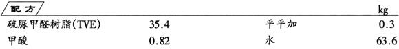将硫脲甲醛树脂放入配制容器中,加入水和平平加,搅拌均匀。使用前加入甲酸,使pH值为3~4。即为成品。
