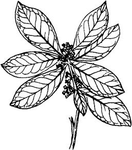 图2-7 桂花 (1)植物学特征。桂花,木犀科,木犀属,为常绿乔木。桂花原产我国喜马拉雅山东段一带,现在四川、云南、广东、广西等省区均有野生与栽培桂花。树干粗糙,叶枝繁茂,叶革质,对生,椭圆形,花序簇生于叶腋。花梗纤细,花冠黄白色,芳香浓烈。桂花花期10月前后,核果来年4~5月成熟。品种分为金桂、银桂、丹桂和四季桂等,花期可分早、中、晚3种,花期长达半个月之久。采花最佳期是开花后的2~4天。在南方,早春2~3月间发芽长新枝,6月新枝半木质化,8月花芽分化,当年生枝条着花多,10月花谢休眠。栽植5年开花,50~100年树龄开花最多。 (2)对环境与土壤的要求。桂花喜光、喜暖、耐寒。好生于空气新鲜环境,喜疏松、肥沃、排水良好的偏酸性砂质土壤,忌盐碱土、灰尘和积水。 (3)施肥技术。桂花地植或盆栽时,都应放入腐熟的有机肥料作基肥。再根据不同的生长时期及时施入追肥,才可保证枝茂花香。其施肥原则应:宁淡勿浓,宁少勿多。 ①7月份,正值桂花生长新枝叶之时,应施入磷钾肥为主的薄肥1~2次,促进花芽分化和孕蕾。施入的有机肥要经发酵腐熟。施入的化肥浓度不要过大,尿素为0.5%,过磷酸钙为2%,要均匀浇入土壤之中。 ②谢花之后,还要施入腐熟的有机肥。 ③冬季宜施豆饼与过磷酸钙混合肥,及时浇回头水,以保证来年新梢生长、花芽分化的营养所需,是盆栽桂花开花数量多少的关键。 (4)施肥不当时的症状。桂花不开花的原因,除去土质不佳,环境不洁,移植伤根之外,就是没有及时施入基肥或追肥,缺乏营养阶段。特别是地植桂花尤其如此。 |