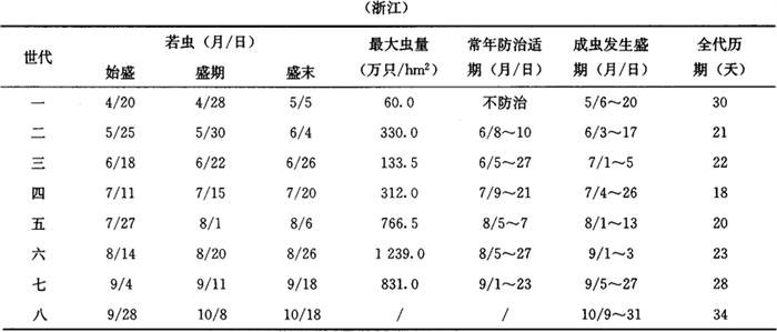 释义 | 桑蓟马测报调查方法 桑蓟马(Pseudodendrothrips mori Niwa)俗名单尾虫,属缨翅目,蓟马科(Thripidae)。国外分布于日本和朝鲜等。国内在江苏、浙江、四川、安徽、山东、河北、河南、湖北、湖南、辽宁、山西、云南、台湾等省均有发生,是浙江桑树上的主要害虫。成虫、若虫均以锉吸口器刺破叶背或叶柄表皮吮吸汁液,致使被害叶因失水而提早硬化,叶背卷缩,梢端生长衰弱,叶质降低,影响蚕的饲养。高温、干旱季节为害更烈,严重时,整片桑园状似火烧。 1 调查内容与方法 1.1 越冬基数调查 晚秋桑树落叶后,选取当地代表性类型桑园及春伐桑园各1块,面积667m2以上。每类型田随机选取20个点,用1/3m2的方框,套在桑园地面的杂草、枯叶上,数清杂草、枯叶上的桑蓟马虫数。越冬后(4月底),用同样方法进行田间虫口密度调查。结果记载于表8-102。根据调查结果分别计算各类型田每公顷虫量,推算出越冬存活率。 表8-102 桑蓟马越冬虫口密度调查表 1.2 发生期虫口密度调查 从4月初开始,定当地桑蓟马为害严重的主要类型桑田1块。夏伐前和8月下旬后,每3天调查1次;夏伐后,7月上旬至8月中旬桑蓟马盛发期隔天调查1次。每次用随机取样的办法,定20株桑树,每株桑树调查1根枝条。根据不同发生时间桑蓟马的虫口分布规律,每根枝条选取两叶调查。 不同发生时间桑蓟马调查叶位确定参考: 发生初期(夏伐前):调查第四、八叶,或第五叶。 发生盛期(7月上旬至8月下旬):根据枝条长短,在上、下部中段各取1叶调查。 发生末期(8/底后):顶部(二、三叶)和中部下段(高虫区:七、八叶)各选1叶或者第五叶。 将枝条上的成虫、若虫数,记载于表8-103,计算成、若虫百分比、株虫量、每公顷虫量。每次调查结果记载于表8-104,推算最大虫量日。 表8-103 类型田间桑蓟马虫口密度调查表 表8-104 桑蓟马田间调查表 1.3 黏胶板观测桑蓟马成虫消长 采用藏青色或草绿色涤棉布做板面,面积1/3m2,划分成100个方格,表面涂薄黏胶一层(黏胶配制:蓖麻油3份,松香1份,加热混匀即可使用)。每块田设黏胶板两块,1块南北向,1块东西向。黏胶板的下沿在第七至八叶位,上沿略过顶端,隔1周上升一定高度。隔2天统计1次黏胶板上的总成虫数,将结果记载于表8-105,分析成虫羽化高峰,推算产卵高峰。 表8-105 黏胶板捕测桑蓟马成虫调查表 2 预测预报方法 2.1 发生期预测 桑蓟马不但年发生世代多,后期世代重叠严重,且发生量大,虫体微小,若虫的龄别更难以区分。因此,桑蓟马的发生世代和发生期只能根据成虫和若虫的发生量及其相互比例进行推测。一般桑蓟马进入孵化始盛期时,田间桑蓟马虫口密度开始表现突增;进入孵化盛末期时,田间虫口密度为最大。桑蓟马突增日至最大虫量日的历期通常占全世代历期的1/2。但在桑蓟马发生后期,世代重叠严重,突增日和最大虫量日均不显着。此时应根据若虫和成虫的发生高峰日推断桑蓟马的发生期。桑蓟马最大虫量日确定后,加上当代桑蓟马虫口密度突增至最大虫量日的历期可预测为成虫羽化盛期。 2.2 黏胶板成虫捕测 根据黏胶板成虫捕测,在测得成虫高峰后,加上卵历期(5~7天)或再加上1/2若虫历期(10~13天),预测若虫孵化高峰或若虫发生高峰,若再加上下个世代历期即为下一代成虫羽化高峰期。 2.3 最大虫量日预测 桑蓟马年发生世代多,增殖快,当隔天调查到虫口密度成倍增加时,可确定为虫口密度突增期,此后7~10天为若虫最大虫量日,最大虫量日前后1~2天可预测为防治适期。但上述最大虫量日的预测方法仅适用于桑蓟马盛发时使用,桑蓟马发生后期预报各若虫最大虫量日时,虫口密度突增与达到最大虫量的间隔时间应适当延长。 2.4 发生趋势分析 桑蓟马的发生与台风和雨量关系密切。根据越冬和为害期虫口密度调查,若虫基数较高,比例较大时,近期内无台风影响,且气温高、干旱,持续时间大于一个世代历期,则可预测桑蓟马将大发生;持续时间达到二个世代历期则可预测桑蓟马将大暴发,要及早发出虫情警报。 3 防治适期与指标 3.1 查若虫突增日,定防治适期 江、浙两省7月中旬(出梅后)至8月底是全年桑蓟马为害盛期,第四至六代是主要为害世代(其他发生世代一般只进行兼治或不防治)。在此期间内查得田间桑蓟马若虫比例增大,桑蓟马隔天虫口密度成倍增长,可定为若虫突增日,此后1周为防治适期。 3.2 查若虫密度,定防治对象田 根据桑蓟马不同发生时期虫口密度的垂直分布规律,在桑蓟马发生盛期,随机选择5株桑树,每株取1根枝条,在枝条上、下部中段各取1叶调查。当平均两叶虫量合计达200头时;其他时间调查枝条第五叶虫量,当平均单叶虫量达100头时,均可确定为防治对象田。 4 测报参考资料 各代桑蓟马田间发生期及发生量调查 |