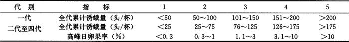 释义 | 梨小食心虫测报调查方法 梨小食心虫(Grapholitha molesta)简称梨小,又名东方果蛀蛾、桃折心虫,俗称蛀虫、黑膏药。属鳞翅目,小卷叶蛾科。我国南、北各果区均有分布,是一种可为害多种果树的害虫。其寄主有苹果、梨、桃、杏、李、樱桃、山楂等。以幼虫蛀食梨、桃、苹果的果实和桃树的新梢。 1 调查方法与内容 1.1 越冬基数调查 于梨小食心虫越冬前,一般在9月中旬开始,选有代表性的幼果园、盛果园和老果园各2块,每块园面积在667m2以上,每块园在靠近边缘、中间部位各选1株梨树,每株梨树在距地面0.1~0.2m的主干上用10cm宽的胶带绕扎一周,一般绕2~3层,人为制造一个越冬场所,于12月下旬调查胶带下的梨小食心虫越冬数量。记入表7-40。 表7-40 梨小食心虫越冬虫量调查记载表 1.2 系统调查 1.2.1 成虫调查 4月初开始选有代表性的桃园2~3块,6月中旬转为梨园,至诱不到成虫时结束。在每块桃园、梨园内距地面约1.5m处悬挂梨小食心虫性引诱剂口杯(杯口直径8cm)4个,每杯相距约50m。每杯上部1cm处悬挂1枚梨小食心虫性诱芯。性诱芯每15天换1次,杯中放少量洗衣粉,每天早晨观察杯中成虫数并剔除。将结果记入表7-41。 表7-41 梨小食心虫成虫性诱剂诱集记载表 1.2.2 卵果数调查 自梨园诱到成虫时开始查卵,每5天调查1次,取每候的中间日,即每旬逢3、8日调查。选择幼果园、盛果园、老果园各1块,每块园面积在667m2以上,每块梨园在靠近边缘中间部位各固定一株梨树,每株树在上部、外部、内部共查梨果100个(以嘟噜果为主)。记载卵果数,计算卵果率。记入表7-42。 表7-42 梨小食心虫卵量调查记载表 1.3 普查 1.3.1 桃园折梢率普查 共普查2次。分别于5月上旬和6月上旬进行。选有代表性的桃园10~15块,每块园选2~3株,每株普查20个梢。记载折梢数,计算折梢率。记入表7-43。 表7-43 桃园折梢率普查记载表 1.3.2 梨园卵果率普查 于每次大面积防治前进行。选有代表性的梨园10~15块,每块调查2株梨树,具体方法同卵果数系统调查。将调查结果记入表7-44。 表7-44 梨小食心虫卵果数普查记载表 2 预测预报方法 2.1 发生期预测 当性诱剂诱集成虫数量连续增加时,表明已进入发蛾盛期。发蛾盛期后推3~5天,即为产卵盛期。 2.2 发生程度预测 依据越冬基数、田间诱蛾量、卵果数及历史资料,并结合气象预报,对发生程度做出综合预测。夏秋多雨年份利于梨小食心虫的发生。 3 发生程度划分标准 梨小食心虫发生程度划分标准 |