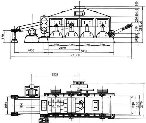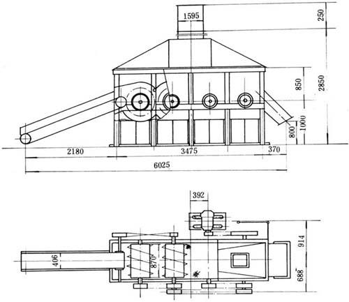 释义 | 棉秆备料除尘设备 1.棉秆切断,破碎联合机 该机具有切断、破碎两种功能,是目前棉秆备料的主要设备。 该联合机采用较大切削能力的鼓形刀辊进行切断,并利用刀辊转动使棉秆被底板上的两把副刀剪切来破碎粗大棉秆。破碎后的棉秆进入有两个连续排列的圆柱齿轮的棉秆筛,上面装有专用钢齿,下面有带孔筛板、旋转钢齿,对棉秆进行强力摩擦和揉搓,经各辊齿的打击拨动和疏散,使分离出来的髓、胶质、黑色表皮碎屑、尘土等经过筛板落入灰斗,达到筛选净化除尘的目的。 图6-2-43 破布初步除尘机 联合机主要包括进料胶带输送机,切断破碎机,中间胶带运输机,棉秆筛碎末出料螺旋和除尘等设备装置。其主要技术特征见表6-2-32。 表6-2-32 棉秆切断破碎净化联合机技术特征 2.棉秆压溃破碎机 图6-2-44 破布最后除尘机 图6-2-45 ZCQ41棉秆切断破碎净化联合机系统 图6-2-46 进料胶带输送机 图6-2-47 中间胶带输送机 表6-2-33 棉秆压溃破碎机技术特征 图6-2-48 切断破碎机 图6-2-49 棉秆筛 图6-2-50 碎末螺旋出料器 图6-2-51 袋式除尘器系统 |