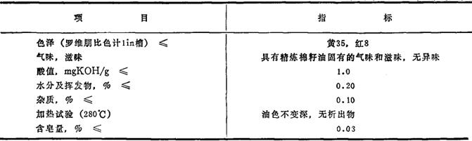 精炼棉籽油质量标准 GB1537-86