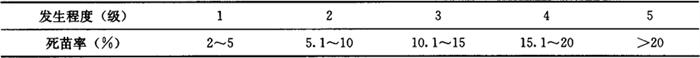 5 苗期病害防治指标 河南省和山东省的防治指标分别为棉花死苗率2%。 |