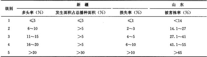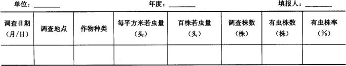 释义 | 棉蓟马测报调查方法 棉蓟马(Thrips tabaci Lindeman),又称烟蓟马、葱蓟马。全国各棉区均有分布。以成虫和若虫用锉吸式口器锉破寄主植物组织,吸取汁液和营养。棉蓟马除为害棉花外,还为害烟草、葱、蒜、瓜类、马铃薯、番茄、白菜等多种作物。 1 主要影响因子 1.1 温湿度 棉蓟马喜欢干旱。最适宜温度20~25℃,相对湿度40%~60%。春季久旱不雨即是大发生的预兆。新疆植保站观察,成虫在日平均温度达4℃时即可活动,10℃以上时取食活跃。旬平均气温升到12.5℃以上时开始产卵繁殖,16.6~19.7℃时繁殖速率加快,虫口密度迅速增长。棉蓟马耐低温的能力较强,不耐高湿。当气温高于25℃,相对湿度超过60%时,其种群密度呈下降趋势。 1.2 虫源寄主植物的影响 若棉田前茬作物为苜蓿,邻作作物为葱、蒜、烟草、瓜类或红花、向日葵、苜蓿时,为害最重。若邻作为豆科作物则受害次之,为禾本科作物时,受害最轻。 1.3 天敌 棉田内横纹蓟马、小花蝽、华姬猎蝽等棉蓟马的天敌数量对其虫口密度有一定的抑制作用。 1.4 其他影响因素 棉田砂质土壤较黏质土壤棉蓟马发生重。大雨和暴雨可以使成、若虫大量死亡,也能淹死土中的伪蛹。 2 调查内容和方法(新疆提出) 2.1 若虫期调查 分别对棉田外和棉田内两种环境寄主进行调查。 2.1.1 棉田外调查 2.1.1.1 调查时间 南疆棉区一般于3月中、下旬,北疆棉区一般于3月下旬至4月上旬,当棉蓟马出蛰活动,平均气温达10℃以上时开始调查。 2.1.1.2 调查对象 选择棉田附近的菜地,特别是葱地、烟草地、苜蓿地,在上年发生为害较重的寄主作物田的田边、地头、水渠边及林带中的幼嫩的杂草上进行。 2.1.1.3 调查取样方法 对寄主作物调查,共选取2~3块田,每块田采用5点取样,每次共调查50~100株(或1m2)。对寄主杂草调查,采用随机取样,每种杂草上共调查50~100株。统计记载每平方米若虫量、百株若虫量、调查株数、有虫株数、有虫株率。结果记入表5-49。调查每3天进行1次。 表5-49 棉田外棉蓟马调查记载表 2.1.2 棉田内调查 2.1.2.1 调查时间 春季棉花出苗之后,棉蓟马成虫开始迁入棉田。从棉苗的子叶期或1~2片真叶期,到棉花现蕾期。 2.1.2.2 调查田的选择 选择3~5种类型田,每种类型选一块667m2棉田进行调查。 2.1.2.3 调查方法 采用Z字形取样,按田块大小合理安排样点,每块田取50株棉花。注意观察棉花的生长点受害情况。调查有虫株数、被害株数、百株的若虫量,结果记入表5-50。每3天调查1次。 表5-50 棉蓟马系统调查记载表 2.2 大田普查 2.2.1 普查时间 南疆棉区在5月中旬,北疆棉区在5月下旬,于棉苗的子叶期或1~2片真叶期。棉蓟马主要为害棉苗的生长点,常潜伏在隐蔽处,有时潜入土中,在棉苗上下不易被发现。此时正是棉蓟马为害造成棉苗断头的重要时期,也是第一个猖獗为害期。南疆6月上、中旬,北疆6月下旬至7月初,虫口密度上升到达高峰期,此时正是棉蓟马对棉花的第二个猖獗为害期。对两个猖獗为害期应分别进行1次普查。 2.2.2 普查方法 每种类型田应普查3块以上,注意对历年为害重的棉田进行调查,采用Z字形取样,每块田每次取50株。结果记入表5-51。 表5-51 棉蓟马普查记载表 3 为害损失的统计 3.1 新疆维吾尔自治区损失率的计算 损失率指作物因受害造成的产量损失与应达到的产量之比,以百分率表示。 3.1.1 计算损失系数Q Q=a-e/a……………………………………(1) 式中: a——未受害作物的平均单株产量; e——受害作物的平均单株产量。 3.1.2 计算农作物被害株率(P) P=n/N……………………………………(2) 式中: n——为被害株数; N——调查总株数。 3.1.3 计算损失率(C) C=Q×P……………………………………(3) 4 发生程度分级标准 新疆和山东 注:新疆棉蓟马发生程度分级标准为苗期调查。 |