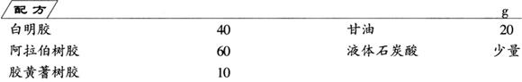 先用白明胶一倍量的水将白明胶浸润使软,静置24~36h后,如已全部软溶,再加入阿拉伯树胶及胶黄蓍树胶、甘油和剩余的水,然后置水浴上加热使之熔融,并不停地搅拌使其全熔融以后,再将液体石炭酸徐徐滴入,同时再搅拌务使其全部混匀,此时并不除火,以使其蒸发少许水分。再用搅棒蘸一滴,滴于玻璃上,如冷却后已确能凝固,即证明火力已够,将火除去,并将其中的胶状物趁热注入棒状的模型中,同时以冷水流浇绕使模型上的热为冷水所吸去,至全部冷却后,即可取出,用锡纸包装,成为棒状封口胶。