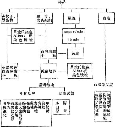 释义 | 棒状杆菌属 棒状杆菌属是革兰氏阳性杆菌,菌体直径大小不一,一端或两端膨大呈棒状。无芽孢,一般不运动。菌体形态除棒状外,尚有以球状或球杆状到细长弯曲的杆菌。染色不均匀,有些菌种有异染颗粒。排列不规则,常呈栅状、V型、L型等。本菌分布在人和动物的粘膜、皮肤上,在土壤、乳品、水中,以及植物上。某些菌种产生强烈的外毒素。 本属细菌可以分为三种类型:人和动物的寄生菌和病原菌、植物致病性棒状杆菌、非致病棒状杆菌。 兽医中的病原棒状杆菌,主要有四种。 一、假结核棒状杆菌(Corynebacterium pseudotuberculosis) 本菌主要致绵羊及山羊的干酪样淋巴腺炎,尚可引起牛、马的溃疡性淋巴管炎,以及骆驼和其他温血动物的化脓感染。 病原特性与实验诊断方法如下。 1.样品采集 采取脓汁、坏死组织或外部病灶的渗出液。本菌脓汁的特点质地均匀如牙膏状,呈白色至灰白色,没有臭味。如有必要也可采取鼻液、粪便、土壤或污染严重的其他样品。 2.涂片检查 用脓汁在玻片上直接涂片,革兰氏染色,可以见到革兰氏阳性的杆菌,或为小的球杆状。排列呈典型的栅状,也有丝状、颗粒状和分段样,与葡萄球菌的排列颇为相似,唯菌体一般较小。 3.分离培养 取脓汁、坏死组织、渗出液接种于血液琼脂上,在有CO2的条件下有利于本菌的初步分离。如系鼻拭子、粪便、土壤和污染严重的其他样品,则可接种于选择培养基上如亚碲酸钾血液琼脂平板。本菌能吸收碲盐,并使其还原为金属碲,形成带黑色的菌落,可作为棒状杆菌的筛选和鉴别。 在血液琼脂上经18~24h的培养,长出直径小于1mm的菌落,半透明;随培养时间延长,变为不透明,呈乳白色。菌落周围有狭窄的β型溶血带。继续培养,菌落增大,常带黄色,有同心圈,趋于干燥而松脆。菌落在琼脂培养基表面上容易被推动,且不破坏或留下痕迹。如接种环粘有本菌,则在酒精灯火焰上烧灼时发出丝丝的声音并溅向四处。这是因为本菌细胞壁中含有较多的脂类。 在肉汤培养物中形成疏松的菌膜和颗粒沉淀,而液体部分甚为清朗。 4.生化反应 本菌系需氧及兼行厌氧,发酵而不氧化葡萄糖。对葡萄糖、半乳糖、麦芽糖和甘露糖产酸。对乳糖、蔗糖、木糖、糊精、阿拉伯糖、甘露醇、甘油的结果不定。对淀粉和蕈糖不发酵。但也有报道,有的菌株水解淀粉。硝酸盐还原不定。尿素水解和明胶液化也不一致。在吕氏血清斜面上生长,不液化。在此培养基上的菌体,用Albert法染色,可以见到异染颗粒。总之本菌的发酵和其他试验结果,变化非常之大。接触酶阳性。 5.动物实验 本菌接种绵羊、山羊、马、牛、骆驼、家兔、豚鼠、小白鼠均能引起化脓性病灶,甚至死亡。家禽有抵抗力。本菌产生外毒素,可以使豚鼠、家兔、绵羊死亡。静脉内注射本菌于豚鼠,在4~10天内死亡,剖检见肺及肝脓肿。腹腔内接种于雄性豚鼠,约4~5天后,发生类似鼻疽杆菌所引起的典型睾丸炎。 6.血清学试验 也可以用来诊断本菌所致之病。 (1)抗溶血抑制试验(Anti-beta-haemolysis inhibitation test,AHI) 本菌的肉肝胃酶消化汤培养物滤液,能够抑制金黄色葡萄球菌β毒素的溶血作用,如加入假结核棒状杆菌的抗血清,即可中和本菌的抑制溶血作用。可以用已知的本菌滤液,检查待检血清,也可用已知本菌抗血清检查未定的菌种。 (2)间接血凝试验 以纯化的本菌毒素作为抗原,致敏经重偶氮联苯胺处理的甲醛化红细胞,与待检血清进行试验。有人以羊血清在1∶16以上判为阳性。本试验较AH1敏感,其检出阳性动物的时间较早,持续时间也较长。 (3)琼脂扩散试验 本试验抗原制备是将细菌接种于100ml的肉肝胃酶消化汤中,37℃培养48h。离心沉淀,收集菌体,再以生理盐水洗涤2次,弃去上清,用1/20mol/LHCl2ml悬浮菌体。间接煮沸15min。离心沉淀取上清,用1mol/LNaOH调整pH至中性,即为抗原。与待检血清进行试验,有人以羊血清1∶8以上判为阳性。 (4)凝集反应 本法适用于田间诊断。其关键在于选择一株稳定的假结核棒状杆菌,它可以形成均匀一致的悬浮液。因为一般的菌株常易自我凝成团块,不宜用作抗原。将选用的稳定菌株培养物悬浮于5%NaCl溶液中,其中并含有10~20%正常兔血清,即可作为抗原作凝集反应。 二、化脓棒状杆菌(Corynebacterium pyogenes) 本菌致牛的化脓性肺炎、慢性化脓性乳房炎、子宫炎、关节炎、肾炎,小牛脐带感染、创伤感染,绵羊及山羊的肺炎、乳房炎、关节炎,猪的化脓性肺炎、多发性关节炎、传染性鼻炎。有时专门与坏死梭形菌联合在一起。偶从人的急性咽炎病灶、尿道渗出物和皮肤病灶中分离出。此菌现称为化脓放线菌。 病原特性与实验诊断方法如下。 1.样品采集 采取肺、脓汁、乳汁和其他炎性渗出物。脓汁具有恶臭气味。 2.涂片检查 样品直接涂片,菌体为多形的小球杆菌。最小的细菌呈现为几乎看不见的小点,常见于老的化脓处。本菌球形细菌的链与链球菌相似,但也有棒形的短的细菌。革兰氏阳性,但较易褪色。无异染颗粒。 3.分离培养 将样品接种于血液琼脂平板上或硫乙醇酸钠肉汤中。接种材料中如含有组织碎片,则生长更好。有时革兰氏阳性厌氧菌与本菌混合生长,则可在需氧培养基中再次培养,化脓棒状杆菌很容易分纯。在5~10%CO2条件下,有助于本菌的生长。 在血液琼脂上37℃培育36h后,本菌形成细小露滴样的菌落,颇似链球菌,周围有界限明