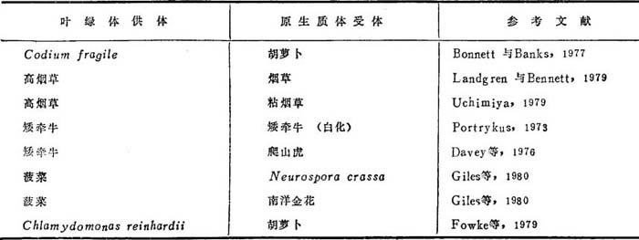 释义 | 植物原生质体遗传转化 (一)植物细胞转化综述 广谱技术学的迅速出现,无疑将对重要作物遗传改良,在近25年中作出重大贡献。重组DNA和原生质体技术学的最近发展,将提供希望和终于有利于植物细胞转化。植物细胞转化可分成二类:(1)直接把裸DNA引入植物细胞原生质体,或(2)DNA碎片先转移到载体再引入原生质体。理想的是转化将随之发生转化原生质体再生完整植株,证实转移特性的表达和遗传稳定性。 植物细胞遗传转化的早期工作,着眼于各种植物组织吸收裸DNA,如花粉,幼苗和游离核。由于纯DNA易受寄主细胞核酸酶的破坏和缺少适当遗传标志,所得结果非常难于解释。少数报告叙述了直接DNA吸收转化的植物内外源遗传材料的表达。Holl等(1974)报道用Azobacter vinelandii外源DNA处理的大豆原生质体再生愈伤组织,能在以甘露糖醇为碳源的培养基上缓慢生长。细菌易于代谢甘露糖醇,而大豆细胞无此能力。但是缓慢生长是由于细胞有限地吸收了甘露糖醇的结果,而不是受转移的Azobacter DNA的表达控制。 纯外源DNA包埋在脂质体中,然后把它与寄主原生质体融合,是解决核酸酶问题的引入的办法。Larquin和Sheehy(1982)证实了带有质粒DNA的脂质体与植物原生质体在促进融合条件下互作强烈,质粒DNA转入原生质体核。由脂质体作为媒介的pBR322 DNA转入烟草原生质体,相当大部分转移的DNA与核结合。只观察到很小量的解体。 近年来已发现了许多潜在载体系统。载体的建立,一般着重于DNA的某些片段,可能有利于把外源DNA引入植物细胞,终于保证遗传稳定性,和转移的DNA片段的遗传力。以含DNA的植物病毒,尤以花椰菜嵌合病毒(CaMV)最受注意。CaMV作为转化载体,由于DNA转移能随着病毒侵染植物组织而引入。再者,CaMV有在细胞质内独立复制能力,排除了必须与染色体整合的需要。采用CaMV,E.coli lac作用子片段,成功地转入芜菁叶。从转化植株抽提病毒DNA,证实了lac作用子片段的存在,但植株延长生长后插入的lac消失。其缺点是寄主范围受严格限制(这种病毒只侵染十字花科),和能转移的DNA大小很有限,约256碱基对。 最占先的植物细胞转化体系是肿瘤农杆菌的肿瘤诱导质粒(Ti质粒)。这种细菌是冠瘿肿瘤病的致病因素,具有遗传转化寄主植物细胞能力。这些基因传导致瘤性质,包括生长素自养和肿瘤专化基因产物,都处于Ti质粒上。在侵染过程中,Ti质粒的T-DNA与寄主细胞核DNA相整合,提供一种外源DNA稳定转入植物细胞的自然机制。由此产生的转化的植物细胞易于选择,由于它们是荷尔蒙自养的。可惜,这种荷尔蒙自养性大大地干扰整体植株再生。 T-DNA结构和功能的深入分析,有益于开发方法,用以外源基因在专化位置插入T-DNA。最近从细菌基因新霉素磷酸转移酶Ⅱ(提供卡那霉素抗性)和蓝曙红合成酶的调节顺序构成的嵌合基因,经再生的原生质体与农秆菌共培养,转移到蓝茉莉花烟草。由于这种基因位于T-DNA内,肿瘤形成的诸基因不转移,转化愈伤组织作为卡那霉素抗性而易于选出,并再生完整植株(Hbrsch等,1984)。这些植株结了种子,卡那霉素抗性作为显性孟德尔特性稳定遗传。 用T-DNA载体转化,当然是DNA转入植物细胞的最先进体系。转化成功并再生转化植株。这些结果是惊人的,但必须看到Ti质粒或其衍生物作为普通转化载体的局限性。当前Ti质粒媒介的转化有效性,限于肿瘤农秆菌的天然寄主范围。因此,Ti质粒目前不适用于大多数单子叶植物,包括禾谷类。最重要的是,由于T-DNA不包含任何农业有用基因,必须鉴别经济或农业价值的精确基因顺序。这将要求充分表征分子的和生化的特性。要广泛分析整个植物基因组,遗传组织和基因产物功能调节的相关。 植物细胞具有二种核外遗传信息位置:线粒体和质体。大多数植物的细胞器特性是非孟德尔遗传。若干农艺重要特性是母性遗传,如质体发育,雄可育性,叶形态,和花分化。有可能这种遗传信息编码的特性,至少部分为质体或线粒体基因组所带有。高等植物的细胞器基因组是环形双链DNA。电镜观察鉴定出闭式(扭曲的)和开式(松弛的)圆环二者。许多例证中,细胞器基因组在结构和功能方面的了解,比核基因组的为好。 烟草属叶绿体DNA是双链环形结构,长约50nm,分子重95-100×106d。cp DNA易于复性,反映出叶绿体基因组的同质的或保守性质。在结构和遗传含量上它比核DNA的复杂性要低得很多。在发育期间,cpDNA复本数变异很大,从每叶绿体只有少数几个到100个。它可以三种形式存在:环、超旋环或环二聚体。每环分成不同区域。倒置重复区域通常长20-25千碱基,含有核糖体和转移RNA的基因。单复本区域含有许多叶绿体蛋白质和转移RNA基因,其编码能力超过100多肽。叶绿体基因组已知基因产物如表16-1。 表16-1 叶绿体基因产物 高等植物线粒体与真菌、酵母或动物细胞的很不相同。较大和变异很多。黄瓜的分子大小变异最大,同一家系内,线粒体基因组大小可相差7或8倍。至今高等植物线粒体基因组kb范围为250-2500。 线粒体基因组组织是独有的。复性动力学和限制性片段分析,指出其分子异质性。电镜分析指出大多数mtDNA存在着大线状分子,带有若干开环和共价闭环分子。环形DNA相对负数低,大小和相对数量有许多异质性。玉米至少观察到7级不同大小,从1.8-68kb,环形从少于1%-48%。马铃薯, 深知高等植物mtDNA的异质性,为什么这些基因组这样大,它们编码什