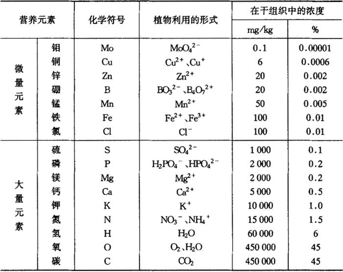 释义 | 植物必需的营养元素 【参考文献】: [1]何念祖,孟赐福.植物营养原理.上海:上海科学技术出版社,1987 [2]张道勇,王鹤平.中国实用肥料学.上海:上海科学技术出版社,1997 [3]浙江农业大学.作物营养与施肥北京:农业出版社,1990 [4]谭金芳,介晓磊等.钾肥施用原理与实践.北京:中国农业科技出版社,1996 [5]林葆.我国化肥的肥效及其提高的途径.土壤学报.1989 [6]沈其荣,谭金芳,钱晓青.土壤肥料学通论.北京:高等教育出版社,2001 [7]陈伦寿,李仁岗.农田施肥原理与实践.北京:农业出版社,1984 [8]浙江农业大学.植物营养与肥料.北京:农业出版社,1988 植物体是由许多化合物构成的,这些化合物又由不同的元素组成,但这些元素不一定都是植物必需的。科学工作者通过溶液培养法和砂基培养法确定了植物必需的营养元素。 (一)植物的营养成分 一般新鲜植物中含有75%~95%的水分和5%~25%的干物质。将其烘干即得干物质,其中包括有机物和无机物。干物质经煅烧后,有机物中的碳、氢、氧、氮等元素以二氧化碳、水蒸气、分子态氮、氨和氮的氧化物形态散失,一部分硫煅烧成硫化氢及二氧化硫,因此,这些元素称为可挥发性元素。煅烧后剩下的固态残留物质便是灰分。灰分中的元素称为灰分元素,能被植物所利用的灰分元素,称为营养元素。灰分元素的成分很复杂,包括磷(P)、钾(K)、钙(Ca)、镁(Mg)、硫(S)、铁(Fe)、锰(Mn)、锌(Zn)、铜(Cu)、钼(Mo)、硼(B)、氯(Cl)、硅(Si)、钠(Na)、硒(Se)、铝(Al)等。由于作物种类、器官和品种的差别及气候条件、土壤肥力、栽培技术等的不同,都会影响作物体内营养元素的种类和含量。如豆科植物富含钙,马铃薯含有较多的钾。玉米叶片中含氮量2%左右,而茎含氮仅占0.7%。盐土中生长的植物含有钠,酸性红壤中的植物含有铝。 (二)必需营养元素的确定依据及其种类 依据灰分的化学分析,只能确定植物含有元素的种类与数量,但这些元素不一定都是植物必需的。有些元素可能是偶然被植物吸收,甚至还能大量积累;反之,有些元素对于植物来说需要量虽然极微,但却是植物生长不可缺少的营养元素。要确定哪些是必需的元素需进行人工培养试验。目前认为,必需营养元素是指在培养液中系统地减去植物灰分中某些元素,而植物不能正常生长发育,这些缺少的元素是植物营养中必需的称为必需营养元素。 通过人工培养试验与植物材料的成分分析,证明植物生长发育必需营养元素共有16种,它们是:碳(C)、氢(H)、氧(O)、氮(N)、磷(P)、钾(K)、钙(Ca)、镁(Mg)、硫(S)、铁(Fe)、铜(Cu)、硼(B)、钼(Mo)、锌(Zn)、锰(Mn)、氯(Cl)。表1-1表明了大多数高等植物对16种必需营养元素的需要量相差很大。一般地,碳、氢、氧、氮、磷、钾、钙、镁、硫这9种元素称为大量元素;氯、硼、钼、铜、锌、铁、锰7种元素称为微量元素。 表1-1 16种必需营养元素及其在植物体内较适合的浓度 其实,植物体内的营养元素种类很多,现已发现的有60种以上,存在于不同的植物中,但是,只有上述16种元素是植物所必需的。确定其是必需元素的依据是根据Amon与Stout所提出的高等植物必需营养元素的三条标准:①该元素是植物正常生长和生殖所不可缺少的,缺少了植物就不能完成生活史。②植物缺乏该元素出现的病症,加入该元素可逐渐消除,不能用别的元素代替。③该元素的作用是直接的,不是由于它改变了植物的其他生活条件(如促进或抑制其他元素的吸收,改变土壤pH,影响土壤微生物的活动等)而造成的。当然,随着研究的深入,还可能发现有其他元素会成为必需营养元素。 (三)必需营养元素的一般生理功能 植物体内必需营养元素的生理功能,可概括为两大类:一是构成植物体的物质成分,如N、P、S、C、H、O是组成植物体的主要成分;二是调节生命的代谢活动。例如,某些必需矿质元素是酶的辅基或活化剂。此外,还有维持细胞的渗透势,影响膜的透性,调节原生质的胶体状态和膜的电荷平衡等作用。 每一种必需营养元素在植物生命活动中,不论数量多少都具有同等作用,对植物体各有其特殊的生理作用,不能被其他元素所代替。营养元素的这一性质我们称之为必需营养元素的同等重要性和不可代替性。 |