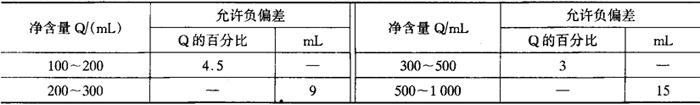 3.净含量负偏差 单件定量包装净含量负偏差不得超过表5-2-44的规定,同批产品平均净含量不得低于标签上标明的净含量。 表5-2-44