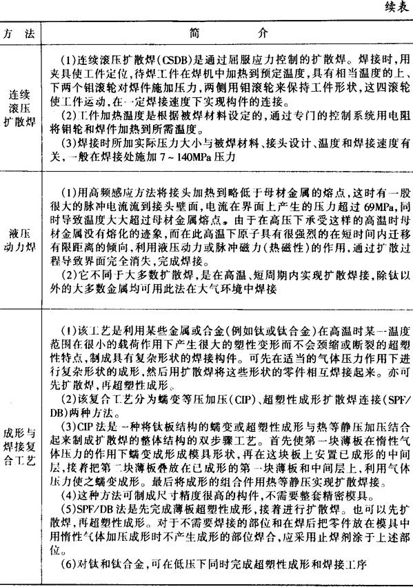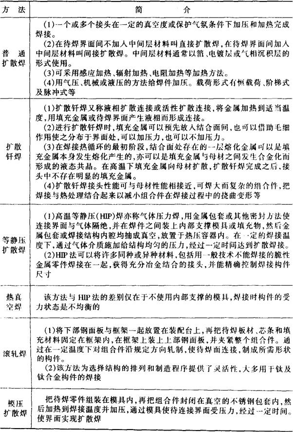 释义 | 概述 扩散焊是通过高温和施加压力使焊件达到紧密接触,在界面处原子互相扩散或固相反应,产生原子结合,从而形成整体接头。 扩散焊一般分为三个阶段,如图7-29所示。第一阶段,主要是通过屈服和蠕变机理使凹凸不平的接触处发生变形,从而在大部分界面上形成紧密接触。虽然在这一阶段后期,界面之间还有空隙,但接触部分已基本上实现晶粒之间的连接。第二阶段,界面随时间的推移而发生变形,并且,由于晶界处于原子的持续扩散,使许多空隙消失,但仍有许多小空隙遗留在晶格内。在这个阶段扩散比变形更重要。第三阶段,由于孔隙表面的原子体积扩散,晶粒长大穿过界面,界面氧化物被固溶或弥散,使界面和孔洞消失,形成冶金连接。然而,在实际过程中,这些阶段并非截然分开的,其产生机理过程可能相互重叠,支配一个阶段的机理,可能在其他阶段也起一定作用。 图7-29 扩散焊的三阶段模型 (a)凹凸不平的初始接触 (b)第一阶段:变形和交界面的形成 (c)第二阶段:晶界迁移和微孔的消除 (d)第三阶段:体积扩散,微孔的消除 扩散焊由于加热方法、保护方法、加压方式及激活扩散的机理不同分为多种方法,主要扩散焊方法及简介见表7-55。 表7-55 主要扩散焊方法及简介 扩散焊与其他焊接方法相比具有许多优点: 1)能够形成具有母材性能和显微组织非常接近的接头,这对轻型结构非常重要。 2)焊接后零件变形很小,焊后不需要机械加工或成形。 3)由于扩散焊是非熔化焊接,无熔焊时产生的裂纹、气孔、热影响区性能下降等问题。 4)能够焊接其他熔焊方法无法焊接的难熔金属、异种金属、复合材料及陶瓷等。 扩散焊的缺点主要是设备复杂,一次性投资较大;需要对连接表面进行更仔细加工准备,对工件表面的光洁度、平行度、间隙的均匀度及清洁程度要求很高;另外是缺少能保证质量的无损检验技术。 |