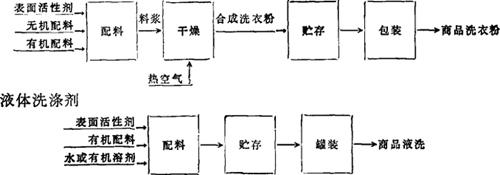 释义 | 概述 合成洗涤剂是经过配方组成具有洗净去污作用的产品,用于提高洗净人肤、衣服和物品上所附着的污垢。合成洗涤剂简称洗涤剂,是本世纪40年代才发展起来的。为了区别于肥皂,有时也称为非皂洗涤剂。合成洗涤剂是配有一种或数种表面活性剂、无机助剂如钙镁离子络合剂、漂白剂、抗污垢再沉积剂,以及荧光增白剂、酶、香料等有机辅助剂配制加工而成的。由于表面活性剂辅以了各种助剂,发挥了各组分的协同作用,提高与完善了洗净去污性能。 合成洗涤剂的种类,从大的方面讲,合成洗涤剂可分为家用洗涤剂和工业及公共设施洗涤剂两大类型,但从产品的形态讲,则又可分为粉状、液体、浆状和块状四大类。有时考虑到被洗物品的类别和各种污垢的种类不相同,为有针对性的有效的去污,通过加入不同功效的专用助剂,形成了具有各种特效功能的合成洗涤剂。从目前市售的产品来看,大致可分为重垢型、轻垢型、通用型、彩漂型、加酶型、柔软及抗静电型、杀菌消毒型、浓缩型、高泡型、低泡型等多种形式。随着科学技术和洗涤剂工业的发展,为更有效和更科学的去污,除上述产品外,对于不同洗涤对象,又出现了更多的专用性洗涤剂,如皮毛制品洗涤剂、羽绒洗涤剂、丝绸洗涤剂、餐具洗涤剂、厨房油污洗涤剂、家具器皿洗涤剂、地毯洗涤剂、玻璃洗涤剂、厕所洗涤剂、浴用洗涤剂、金属表面洗涤剂、车皮洗涤剂、管道洗涤剂等等枚不胜举。 合成洗涤剂生产工艺流程图 粉状合成洗涤剂(喷粉成型工艺) |