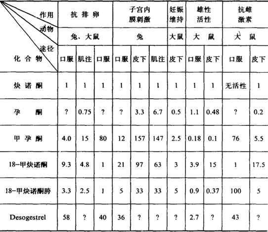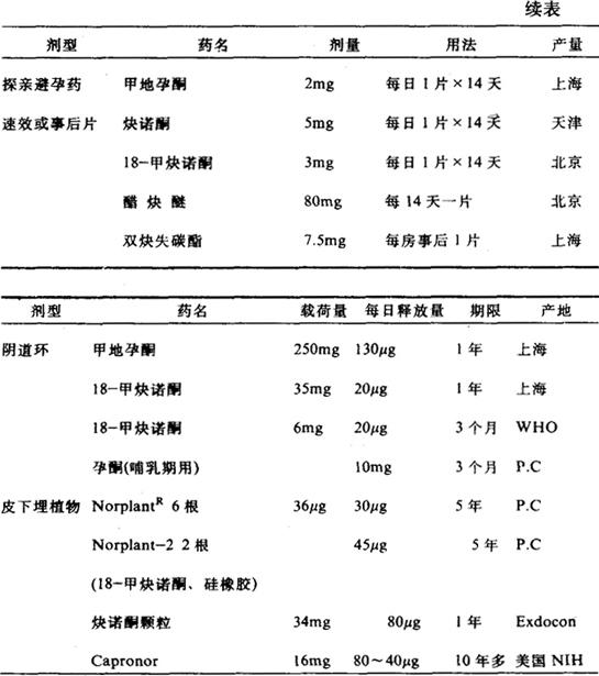 释义 | 概述 一、激素避孕药具发展史 采用合成的孕激素作为口服避孕药已有30多年的历史,其问世是避孕方法史上划时代的新发现。1956年美国Pincus等人首次合成异炔诺酮在波多黎加进行了临床试验。1960年美国药物食品管理局通过了第一种口服避孕药Enovid-10,它内含9.85mg异炔诺酮和150μg3-甲基炔雌醇。由于其避孕效果几乎100%,所以很快在世界各国普遍采用。至80年代,估计约有6千万妇女采用口服避孕药。 1963年,我国国家科委会同卫生部、化工部组织了一支药物合成、药理、临床研究及药物生产的科技队伍,并迅速完成了研制口服避孕药的任务,在一年中就研制成功炔诺酮、甲地孕酮、甲孕酮和氯地孕酮4种口服避孕药。经多中心的临床研究,肯定了其高效,掌握了其副反应的处理,并对其作用机理进行了详细的内分泌和组织学的研究。随之又进行了多次减量临床试验,终于在1967年通过了国家科委的鉴定。1号、2号口服避孕药相应为当时鉴定的复方炔诺酮片(内含炔诺酮0.625mg、乙炔雌二醇0.035mg)和复方甲地孕酮片(内含甲地孕酮1mg、乙炔雌二醇0.035mg)。从此,我国已能生产口服避孕药。在当时,进口一个月的口服避孕药需要18元,而国产的成本仅花几角钱。况且我国采用低剂量片在国际上是首创(是国际片剂剂量的1/4,比国际上的低剂量片早出现7~8年。 继之,1969年北京又合成了18-甲基炔诺酮,为更新一代的口服避孕药,用量少,副反应也相当小。 随着我国计划生育工作的深入发展,人们需要更多样、更安全有效和方便的避孕方法。激素避孕药的发展不应仅限于口服避孕药,而应进一步寻求其他给药途径。根据我国特有的国情又研制了多种探亲避孕药,以及更方便农村使用和管理的长效口服避孕药及长效针剂。同时,又受到国际上避孕药缓慢释放系统成功的影响,在70~80年代相继研制了微球针剂,阴道环。在引进国外已有的皮下埋植物和宫内节育器(IUD)的基础上,也开始研制了缓慢释放药物的皮下埋植物和IUD。在新药的合成方面也有不少进展。 总之,我国在避孕药的发展过程中,有仿制、引进和独创,虽然在近几年中通过国际合作引进了一些国际上先进的方法,但基本上是靠自己生产满足广大群众的需要。 二、名称和化学结构 目前在临床使用的激素避孕药,不论是口服、针剂、阴道环,或皮下埋物均属于甾体类激素,在化学结构上有一共同的类固醇环: 用于避孕药具的主要有以下几种: 1.合成孕激素分为两大类衍生物 (1)孕酮类衍生物: 甲孕酮醋酸脂(a) 甲地孕酮醋酸脂(b) (2)睾丸酮类衍生物: 炔诺酮(c) 18-甲基炔诺酮(d) Desogestrel(e) Gestodene(f) 2.雌激素类 乙炔雌二醇(g) 炔雌醚(h) 3.双炔失碳酯(抗孕53) Anordrin(j) 4.酮肟类-(-Oxime) 炔诺酮肟(j) 18-甲基炔诺酮肟(k) Norgestimate 5.其他 醋炔醚(Quingestano1)(1)Quingestanol 三、剂型和剂量 表3-1-1 激素避孕药剂型剂量表 注:FHI:国际家庭卫生 WHO:世界卫生组织 P.C:美国人口理事会 NIH:美国国立卫生研究所 四、生物活性 根据内分泌生物测定的动物试验各种激素的相对活性强度见下列表格(引自Contraception1987,36:181Phillips et al.) 表3-1-2 各种合成孕激素的生物话性 Desogestrel口服抗排卵作用最强,甲孕酮对子宫内膜刺激作用最强。18-甲炔诺酮的抗排卵和对子宫内膜刺激作用也很强,但具有较高的雄性活性。 五、作用机理 激素避孕药具有很高的抗生育效果。主要作用于下丘脑-垂体-性腺轴系以及性激素所作用的靶器官,如子宫内膜,宫颈粘液等诸多环节。其抗生育作用是多环节的综合效果。 1.对下丘脑-垂体-性腺轴系的抑制作用。 如同天然的孕酮和雌激素一样,合成激素避孕药在大剂量时对下丘脑-垂体产生负反馈的抑制作用。大剂量的口服避孕药能迅速作用于下丘脑分泌垂体促性腺激素释放激素(GnRH或LHRH)的部位,如弓状核、中间隆突区、视前区等,使LHRH的分泌受抑制。由于LHRH的降低,垂体前叶所分泌的FSH和LH也相应降低。激素避孕药同时也直接作用于垂体前叶。由于FSH水平甚低,不能刺激卵巢内始基卵泡的发育,雌激素水平甚低,致使性激素对垂体FSH和LH的正反馈作用受阻,不能激发LH的高峰。一方面是卵泡发育不良,另一方面是缺乏垂体LH的刺激,因而排卵受到抑制。这是大多数大剂量口服和针剂避孕药的主要作用环节。但在应用低剂量孕激素口服片或缓慢释放药的阴道环或皮下埋植物时,就有大约50%的周期卵泡仍能发育或仍有排卵,其作用主要依赖于其他环节。 2.改变子宫内膜使不利于着床 由于卵泡发育受阻,所分泌的雌激素降低,排卵受抑制,且无黄体形成,孕酮水平亦甚低。子宫内膜失去正常的雌、孕激素的刺激所引起的周期性变化。在合成孕激素作用下,子宫内膜腺体不发育,量少而小,间质细胞呈蜕膜样变化。在连续的药物作用下,内膜变薄,甚至萎缩。因此,即使有排卵或受精,受精卵也无法着床于萎缩的子宫内膜。例如,释放孕激素的IUD,主要依赖于所释放的孕激素对子宫内膜局部的直接作用,使内膜萎缩而产生闭经,而并非继发于卵巢功能的紊乱。 3.改变宫颈粘液的物理性能使不利手精子穿透 在正常月经排卵前期,由于卵巢能分泌雌激素的作用使宫颈粘液量增多、稀薄、拉力增强,镜下呈羊齿状结晶,有利于精子穿透。在避孕药的作用下,子宫颈粘液量减少、粘稠、呈细胞型,所含蛋白、酶和电介质均发生变化,使精子难以穿透。阴道环和探