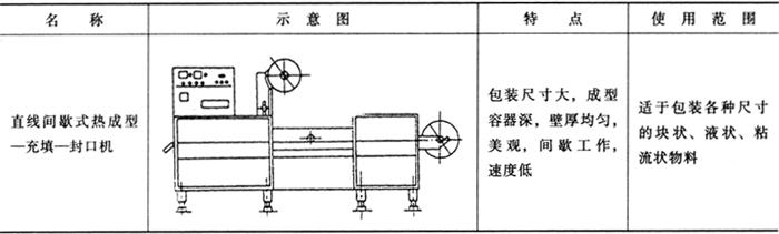 表2-8-1 热成型-充填-封口机类型及性能特点