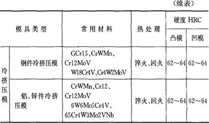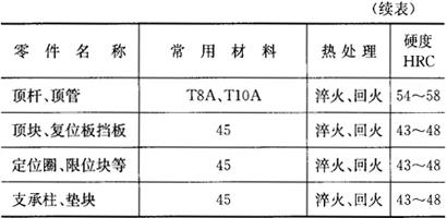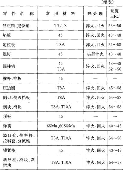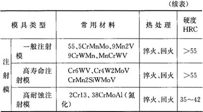 释义 | 模具常用材料 (一)常用模具钢的力学性能(表4.1-2) 表4.1-2 常用模具钢的力学性能 (二)各类模具常用材料及硬度要求 1.冷冲压模具常用材料及硬度要求(表4.1-3) 表4.1-3 冷冲压模具常用材料及硬度要求 2.塑料模常用材料及硬度要求(表4.1-4) 表4.1-4 塑料模常用材料及硬度要求 3.压铸模常用材料及硬度要求(表4.1-5) 表4.1-5 压铸模常用材料及硬度要求 4.锻模常用材料及硬度要求(4.1-6) 表4.1-6 锻模常用材料及硬度要求 5.粉末冶金模常用材料及硬度要求(表4.1-7) 表4.1-7 粉末冶金模常用材料及硬度要求 6.模具附件常用材料及硬度要求(表4.1-8) 表4.1-8 模具附件常用材料及硬度要求 7.其他模具用金属材料 (1)低熔点合金 低熔点合金是指熔点在300℃以下的合金。用这类材料制造模具具有周期短、成本低、工艺简单、无需机械加工等优点。常用来制造塑料模、拉深模和成型模。常用低熔点合金的化学成分和性能见表4.1-9。 表4.1-9 低熔点合金的化学成分及性能 (2)铜基合金 铜基合金具有良好的导热性、尺寸稳定性和加工性能(可冷挤压成型,型腔表面粗糙度极好),适用于制造有色金属压铸模、不锈钢拉深模、塑料模等模具。常用铜基合金模具材料的化学成分及固溶时效处理后的力学性能见表4.1-10。 表4.1-10 常用铜基合金模具材料的化学成分及力学性能 (3)高温合金模具材料 主要包括铁基高温合金、镍基高温合金和钴基高温合金。工作温度可达650~1100℃,广泛用于制造铜热挤压模、钛合金热压成型模等。其化学成分和工作温度见表4.1-11。 表4.1-11 化学成分和工作温度 |