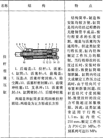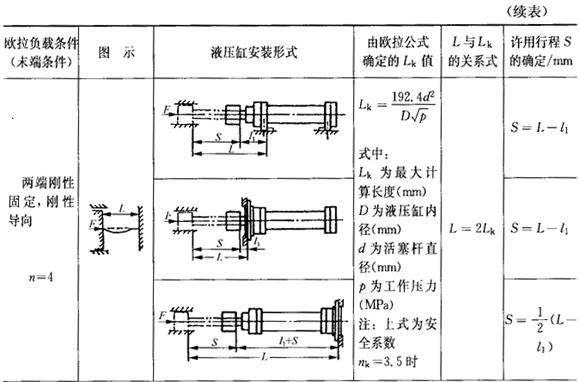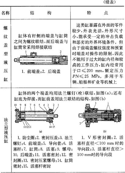 释义 | 模具用液压油缸 1.通用液压缸的典型结构(表8.4-11) 表8.4-11 端盖与缸筒联结方式 ①通用液压缸用途较广,适用于机床、车辆、重型机械、自动控制等机械的液压传动。已有国标和国际标准规定其安装尺寸。模具用它抽拔型芯,具有抽拔力大、抽芯平稳、抽拔距离长、容易自动控制等优点。 ②液压缸的安装形式参见表8.4-13。国际标准ISO6099-1985初步规定了51种安装方式,目前应用较广泛的有3种,详见表8.4-12。 表8.4-12 各类液压缸的安装方式代号 表8.4-13 注:1.表中所列液压缸皆为缸体固定,活塞杆运动。按工作需要,也广泛采用活塞杆固定,而缸体运动。 2.缸头法兰多数为圆形。 表中安装方式代号意义如下: (a)端盖类:ME5为前端矩形端盖安装,ME6为后端矩形端盖安装。 (b)法兰类:MF1为前端矩形法兰安装,MF2为后端矩形法兰安装,MF3为前端圆形法兰安装,MF4为后端圆形法兰安装。 (c)耳环类:MP1为后端固定式双耳环安装,MP3为后端固定式单耳环安装,MP4为后端可拆式单耳环安装,MP5为后端固定式球铰耳环安装,MP6为后端可拆式球铰耳环安装。 (d)底座类:MS2为侧底座安装。 (e)耳轴类:MT1为前端整体式耳轴安装,MT2为后端整体式耳轴安装,MT3为中间固定或可移式耳轴安装,MT4为中间固定或可拆式耳轴安装。 (f)螺栓螺孔类:MX1为两端四个双头螺栓安装,MX2为后端四个双头螺栓安装,MX3为前端四个双头螺栓安装。表中有关安装尺寸可查阅表中有关标准。 2.液压缸的安装形式(表8.4-13) 3.液压缸的主要参数(表8.4-14) 表8.4-14 注:1.内径上限可扩展,按R10优先数系列选用。 2.杆径上限可扩展,按R20优先数系列选用。 3.如果活塞行程超过表中所示数值,可按R10优先数系列选用。 4.常用标准液压缸理论推力和拉力(表8.4-15) 表8.4-15 常用标准液压缸理论推力和拉力 5.许用行程S与计算长度L的关系(表8.4-16) 表8.4-16 许用行程S与计算长度L的关系 6.液压缸固定部分的参考尺寸(表8.4-17) 表8.4-17 液压缸固定部分的参考尺寸 (mm) 注:A活塞杆头部铰接点至缸头中点距离;B1-活塞杆头部铰接点至缸头内侧距离;B2-活塞至缸尾铰接点距离;C-活塞杆外端至缸头外侧距离;E-活塞至缸尾外端距离;F-活塞杆外端至缸头内侧距离;G-活塞杆头部铰接点(固定点)至缸头外侧距离。 |
