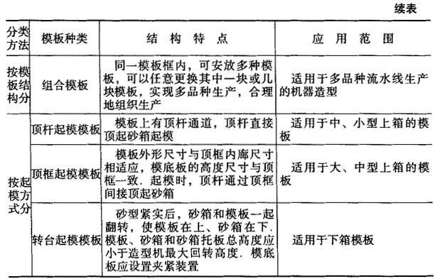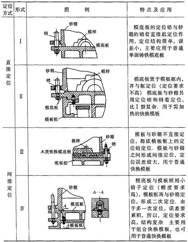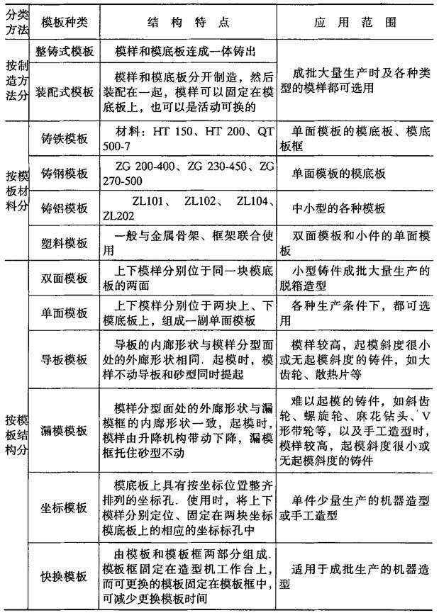 释义 | 模板 5.5.2.1 模板分类及结构特点 模板分类及结构特点见表5-85.图5-10为装配式单面模板,图5-11为整铸式双面模板. 表5-85 模板的分类及其结构特点 图5-10 装配式单面模板 1—模底板;2—定位销;3—沉头螺钉;4—内浇道;5—下模样;6—圆柱销;7—直浇道窝 图5-11 整铸式的双面模板 5.2.2.2 模样在模底板上的放置形式 模样在模底板上的放置形式见图5-12. 图5-12 模样在模底板上的放置形式 (a)平放式;(b)嵌入式 5.5.2.3 模底板与砂箱的定位方式 模底板与砂箱的定位方式见表5-86. 表5-86 模底板与砂箱的定位方式 |