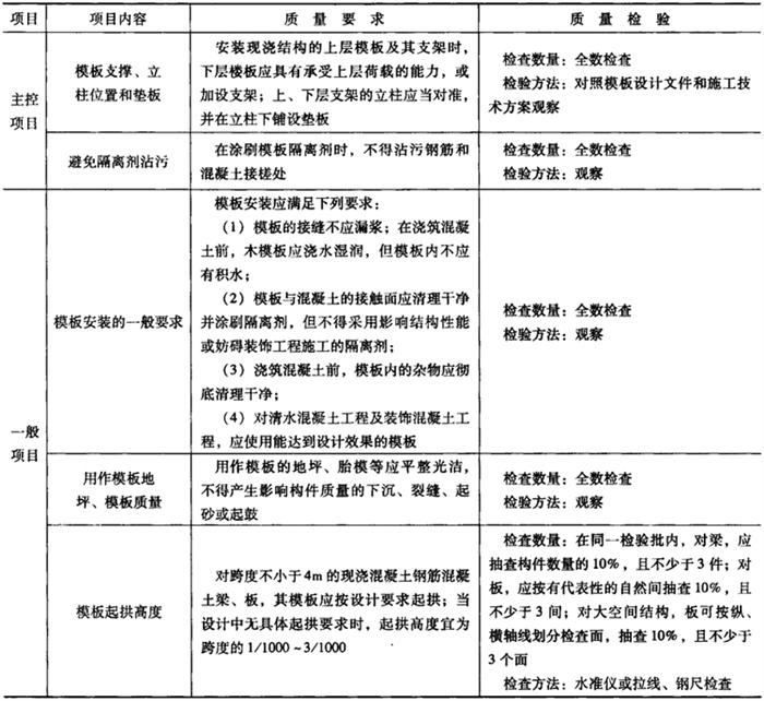 模板安装完毕后,应按照规范的有关规定,对其安装质量进行全面检查,合格后方可进行下一道工序,检查的主要内容如下: