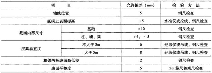 表5-3 现浇结构模板安装的允许偏差及检验方法