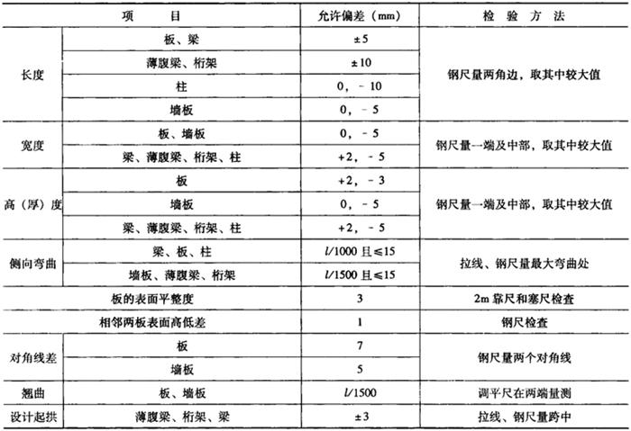 表5-4 预制构件模板安装的允许偏差及检验方法