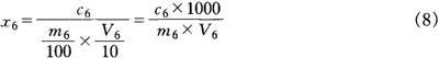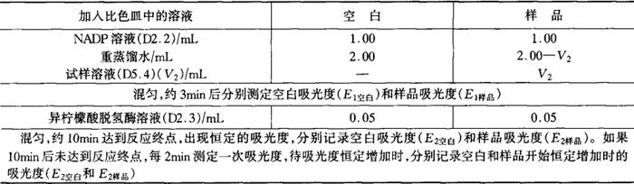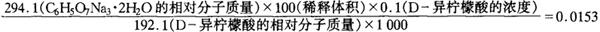 m5——样品的质量,g 1——比色皿光程,cm 6.3——反应产物NADPH在340nm的吸光系数,1×mmol-1×cm-1 D7 允许差 同一样品的两次测定结果之差,果汁含量等于或大于10%的样品,不得超过平均值的5.0%;果汁含量2.5%~10.0%的样品,不得超过平均值的10.0%。 E1 方法提要 橙、柑、橘中的黄烷酮类(橙皮苷、新橙皮苷等)与碱作用,开环生成2,6-二羟基-4-环氧基苯丙酮和对甲氧基苯甲醛;在二甘醇环境中遇碱缩合生成黄色橙皮素查耳酮,其生成量相当于橙皮苷的量。在波长420nm处比色测定吸光度,扣除本底后,与标准系列比较定量。 E2 试剂 本试验方法中,所用试剂均为分析纯;实验用水应符合GB6682中三级水规格。 E2.1 0.1mol/L氢氧化钠溶液:称取4g氢氧化钠(GB629),加水溶解,定容至1000mL。 E2.2 4mol/L氢氧化钠溶液:称取16g氢氧化钠(GB629),加水溶解,定容至100mL。 E2.3 200g/L柠檬酸溶液:称取20g柠檬酸(GB9855),加水溶解,定容至100mL。 E2.4 90%(体积分数)二甘醇溶液:量取90mL一缩二乙二醇(又名二甘醇),加10mL水,混匀,备用。 E2.5 试剂空白溶液:量取20mL氢氧化钠溶液(E2.1)于50mL烧杯中,用柠檬酸溶液(E2.3)调至pH6,转移到100mL容量瓶中,用水定容至刻度,摇匀。 E2.6 橙皮苷标准溶液:称取0.0250g橙皮苷[Hisperidin(由Hesperetin及7-rhamnoglucoside组成),分子式:C28H34O15,相对分子质量:610.6,橙皮苷含量约为80%,本法以80%计],精确至0.0001g,置于50mL烧杯中,加20mL氢氧化钠溶液(E2.1)溶解,用柠檬酸溶液(E2.3)调至pH6,转移到100mL容量瓶中,用水定容至刻度,摇匀。溶液中橙皮苷的含量为200mg/L。此标准溶液需当日配制。 E3 仪器与设备 实验室常规仪器、设备: E3.1 紫外分光光度计。 E3.2 酸度计:精度0.1pH单位。 E3.3 恒温水浴:温控±1℃。 E3.4 具塞试管与试管架。 E3.5 分析天平:感量0.1mg。 E3.6 天平:感量10mg。 E4 试液的制备 称取一定量混合均匀的样品(浓缩汁2.00~5.00g;果汁10.0g;果汁饮料、水果饮料和果汁型碳酸饮料50.0g)于100mL烧杯中,加入10mL氢氧化钠溶液(E2.1),用氢氧化钠溶液(E2.2)调至pH12。静置30min后,再用柠檬酸溶液(E2.3)调至pH6,转移到100mL容量瓶中,加水定容至刻度,用滤纸过滤,收集澄清滤液,备用。 E5 分析步骤 E5.1 工作曲线的绘制 分别吸取0.00,1.00,2.00,3.00,4.00,5.00mL橙皮苷标准溶液(E2.6)于6支具塞试管(E3.4)中,分别依次加入5.00,4.00,3.00,2.00,1.00,0.00mL试剂空白溶液(E2.5),摇匀。再各加5.0mL二甘醇溶液(E2.4)、0.1mL氢氧化钠溶液(E2.2),摇匀,配制成0.0,20.0,40.0,60.0,80.0,100.0mg/L总黄酮标准系列溶液。 将上述试管置于40℃水浴(E3.3)中保温10min。取出,在冷水浴中冷却5min。用1cm比色皿,以0.0mg/L标准溶液调整零点,在波长420nm处测定各溶液的吸光度。以吸光度为纵坐标,相应的总黄酮浓度为横坐标,绘制工作曲线或计算回归方程。 E5.2 测定 吸取1~5mL试液(E4)于具塞试管中,用试剂空白溶液(E2.5),补加至5mL,加5.0mL二甘醇溶液(E2.4),摇匀后加0.1mL氢氧化钠溶液(E2.2),摇匀。同时吸取一份等量的试液(E4)按上述步骤不加氢氧化钠溶液(E2.2),作为空白调零。以下步骤按E5.1操作,测定试液吸光度,从工作曲线上查出(或用回归方程计算出)试液中总黄酮的含量(c6)。 E6 分析结果的表述 样品中总黄酮的含量按式(8)计算: 式中 x6——样品中总黄酮的含量,mg/kg c6——在工作曲线上查出(或用回归方程计算出)的试液中总黄酮的含量,mg/L V6——测定时吸取试液的体积,mL m6——样品的质量,g E7 允许差 同一样品的两次测定结果之差,不得超过平均值的5.0%。 |