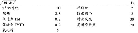 先将2#烟片胶与两种促进剂进行塑炼,再加入其余全部组分混炼,薄通,即得胶片。再经压制成型,硫化,制成橡胶筛板。
