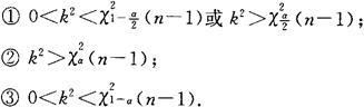 释义 | 正态总体方差σ2的假设检验 1.μ已知 (1) H1:① ② ③ (2)统计量 (3)给出α,H0的拒绝域(小概率事件) 2.μ未知 (1) H1:① ② ③ (2)统计量 (3)给出α,H0的拒绝域(小概率事件) |