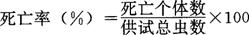 释义 | 死亡率及校正死亡率 这是药剂表示药效的最基本指标。当药剂处理后,在一个害虫种群中杀死个体的数量占群体中的百分数。 但在自然环境下(即对照组中),也会出现一定的自然死亡个体,因此,需要加以校正。一般采用下列公式进行校正。 X——对照组内的生存率 Y——处理组内的生存率 X-Y——药剂处理的死亡率 |