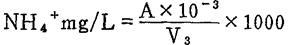 式中:A——工作曲线上查出的样液中铵离子微克数;