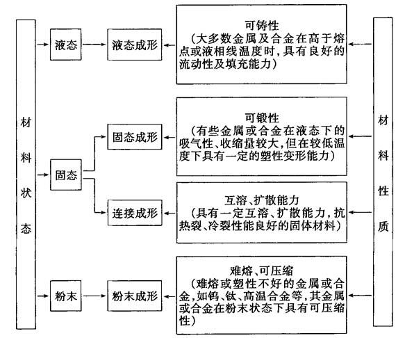 图2-22 毛坯成形方法与材料的状态、性质的关系